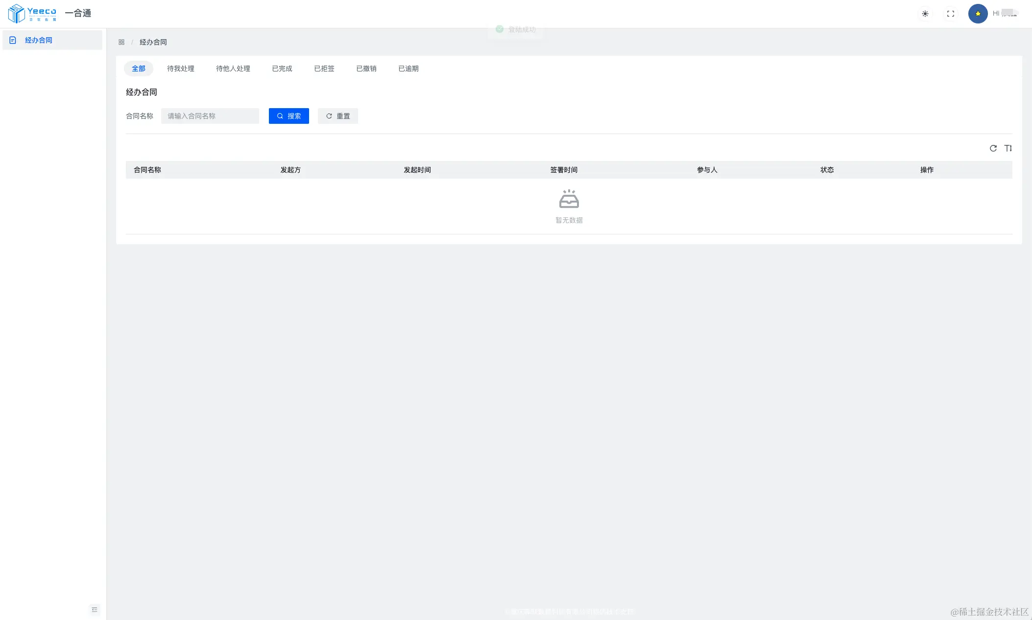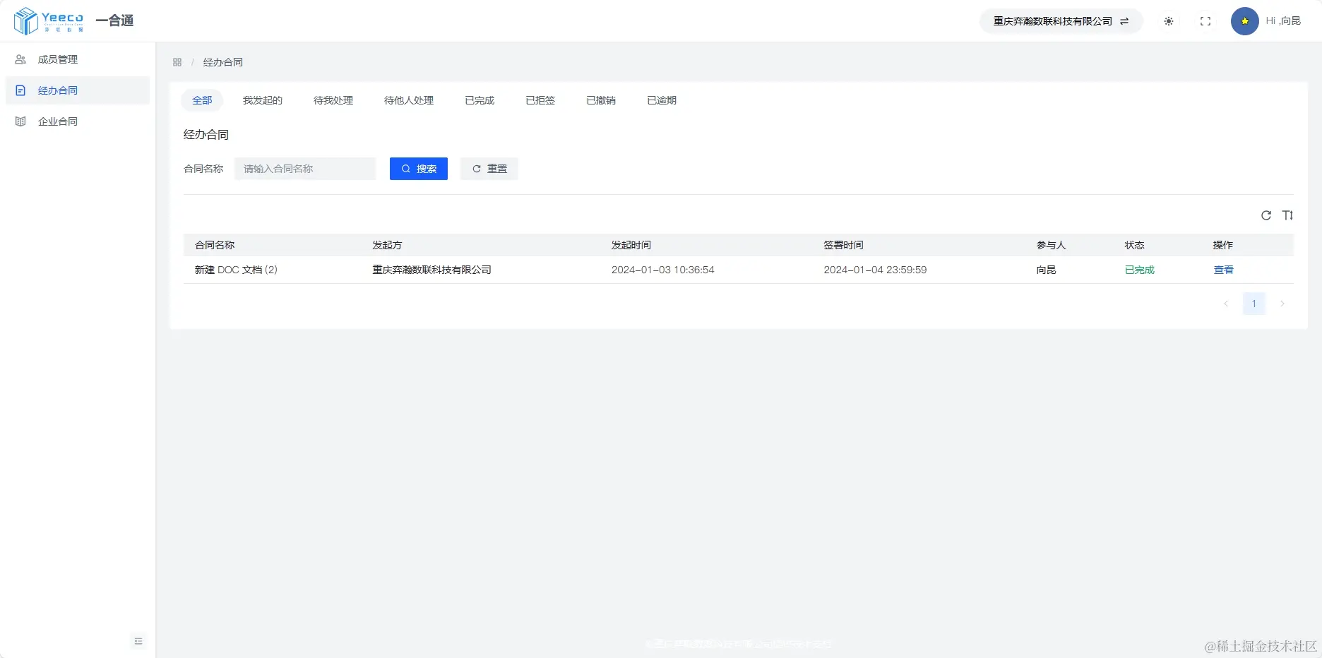 Web 用户端,可以在后台对自己的合同进行相应的签署和查看