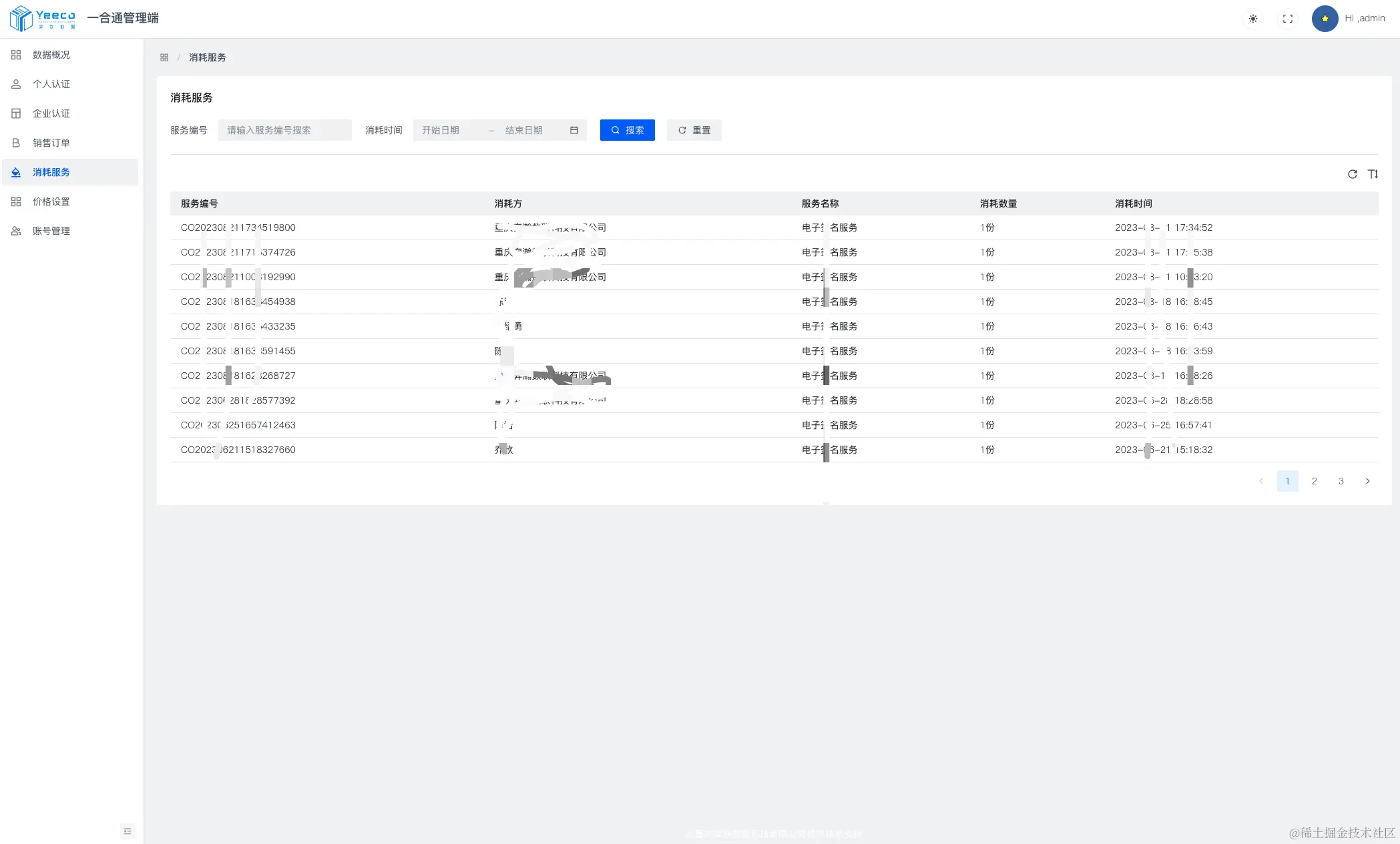 平台可查看到所有合同的使用和消费情况