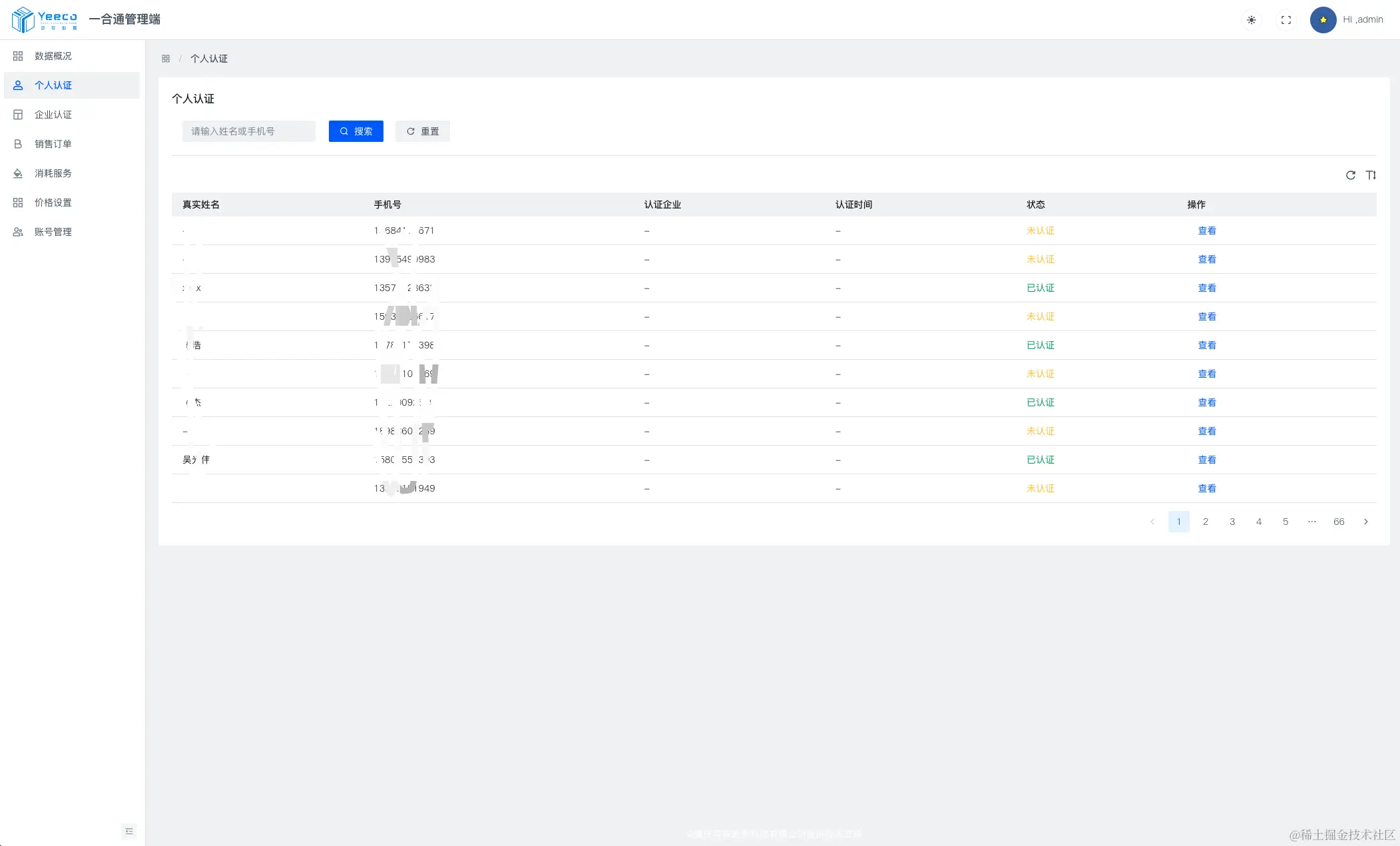 平台可查看到脱敏后的所有个人认证的基本信息