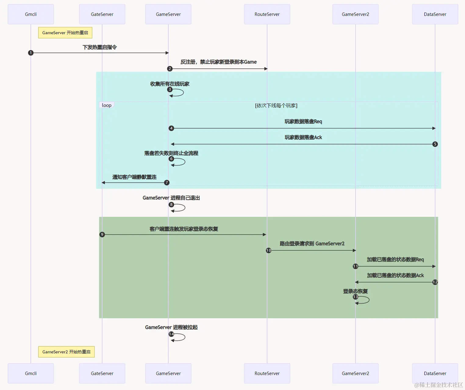 - 依次对本 Game 上的每个玩家开启热重启流程,发起安全存盘(保证成功)