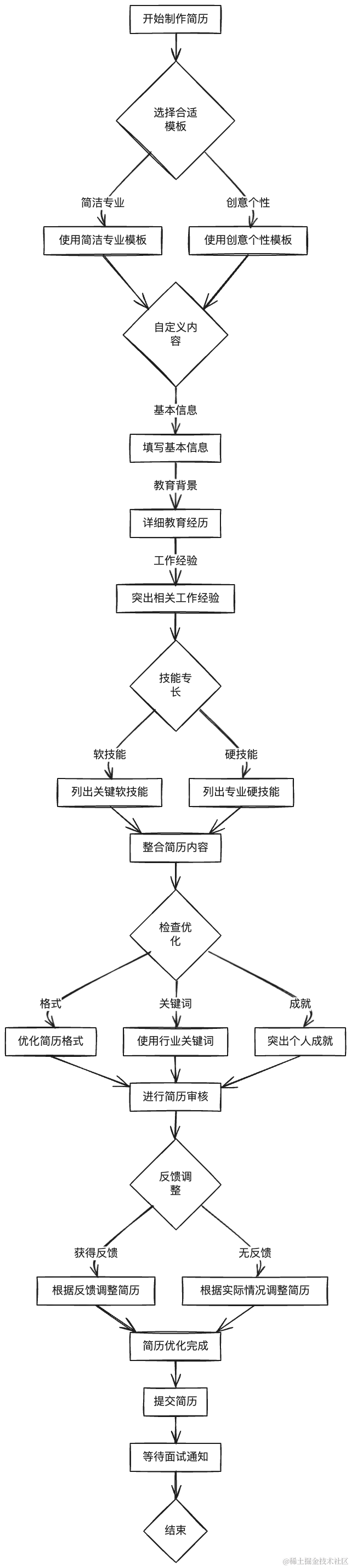 它其实是支持中文的,比如我让他用中文竖屏流程图展示如何制作求职简历,结果如下: