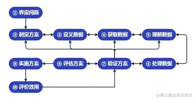 基本只涉及其中的3个模块:⑥ 处理数据、⑨ 实施方案、⑩ 评价效用。