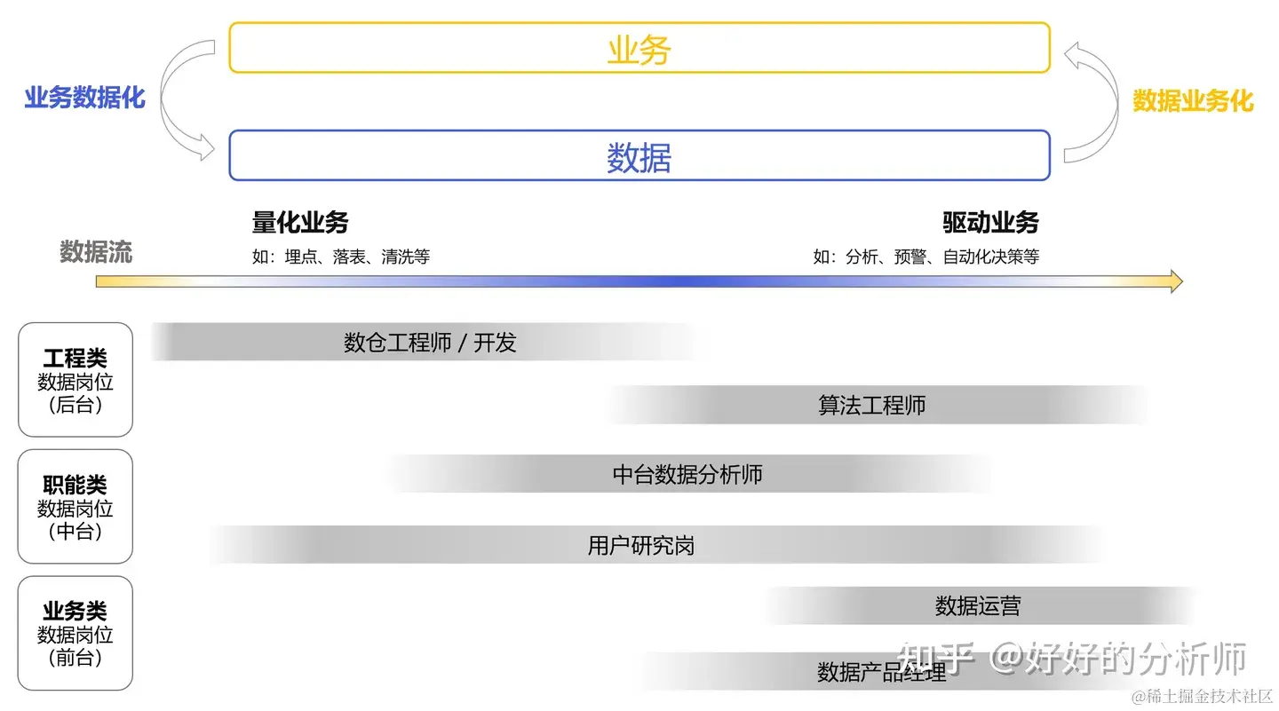 本文将围绕这些启发式的问题进行写作,并力求让读者看完后达到这样一个效果:在承接数据需求的时候,能更多思考数据对业务的作用,能有的放矢地去思考数据需求的价值;如果有志于往业务方向发展的,可以知道往哪个方向去学习。同时我想让大家调整下对接下来内容的预期:我在数据赋能业务方面的经验也寥寥,没有一个大的成功的showcase去更有说服力的介绍成功的方法论(这个需要天时,地利,人和),你们读到后面可能也会发现文章的结构不合理,最后的方法论内容较少,那是因为这方面我缺少建树,可能数分在这方面比较有发言权。但是我仍尽可能地把我学到的、认为通用的、可迁移的,实践过的方法论,放到这次分享里来分享。