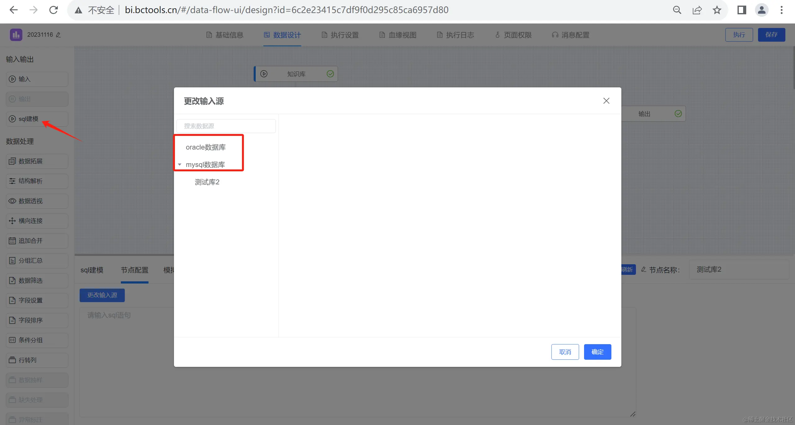 1.数据集添加sql自定义输入节点,支持mysql Oracle数据源;
