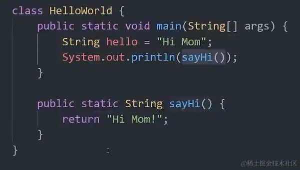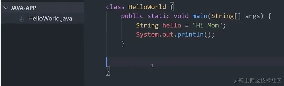 每个 Java 程序都以类名开头,该类名也应该与文件名匹配。该类需要有一个 main 方法。在方法内部,通过以类型开头、后跟名称和值来定义变量。然后我们可以使用内置系统类将其打印到标准输出。