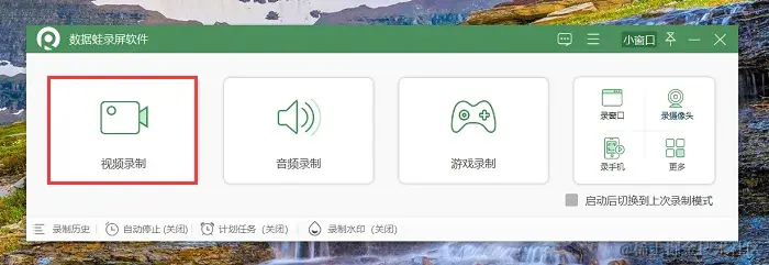 步骤1:下载并安装数据蛙录屏软件,打开它进入主页,在这里您可以看见很多录制模式,包括视频、摄像头、音频等,录制电脑屏幕推荐使用视频录制模式。
