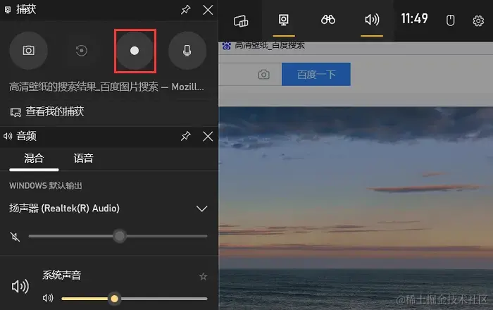 步骤2:确保游戏已启动,在捕获页面,点击Xbox Game Bar中的 “录制” 按钮,开始录制。