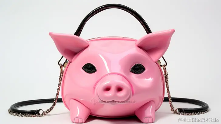 可爱小猪形状金属链条手提包,色彩对比鲜明的风格,怀旧风,软边,狂热派对系