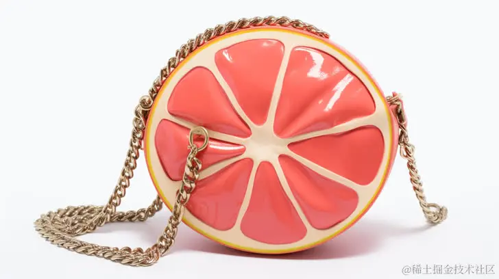 西柚形状金属链条手提包,色彩对比鲜明的风格,波普艺术风格,软边,狂热派对系