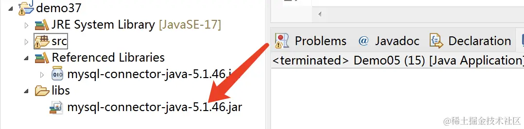 除此之外,大家还有先下载一个mysql的依赖包,并导入到自己的项目中,如下图所示:
