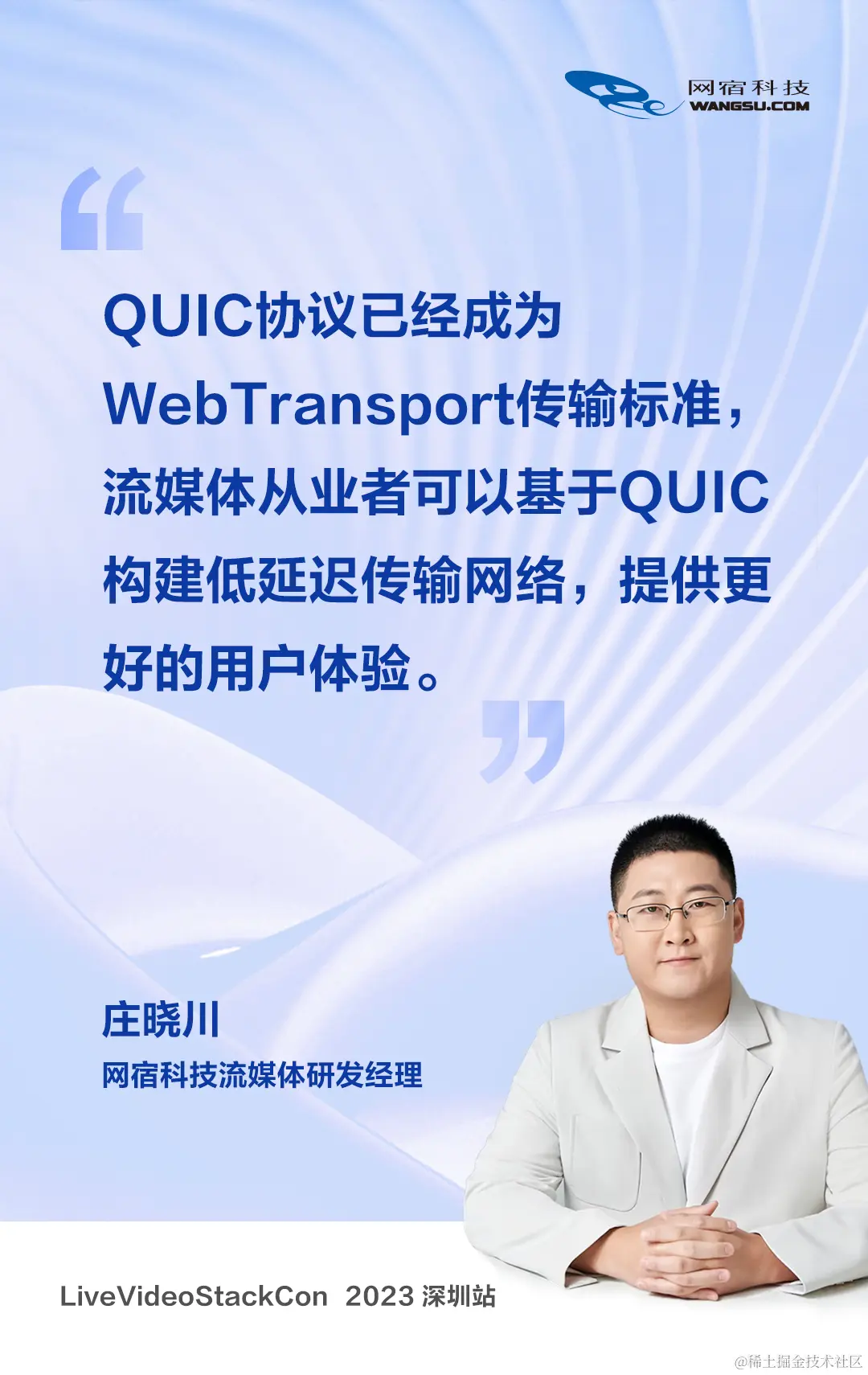 庄晓川认为:QUIC已经成为WebTransport传输标准,流媒体从业者可以基于QUIC构建低延迟传输网络,提供更好的用户体验。