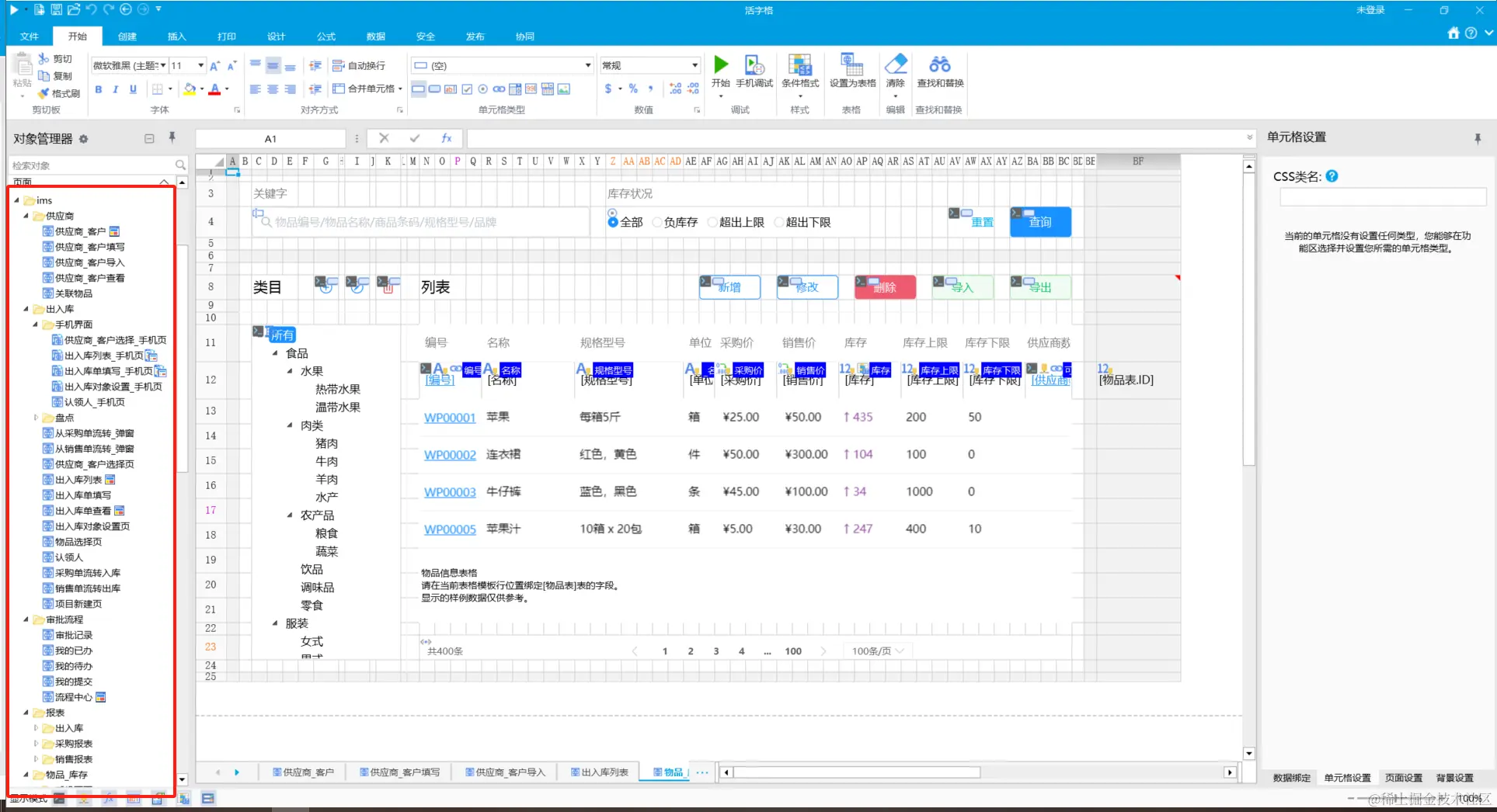 经过以上的步骤,我们就可以使用企业级低代码平台-活字格来搭建出一个库存管理系统。