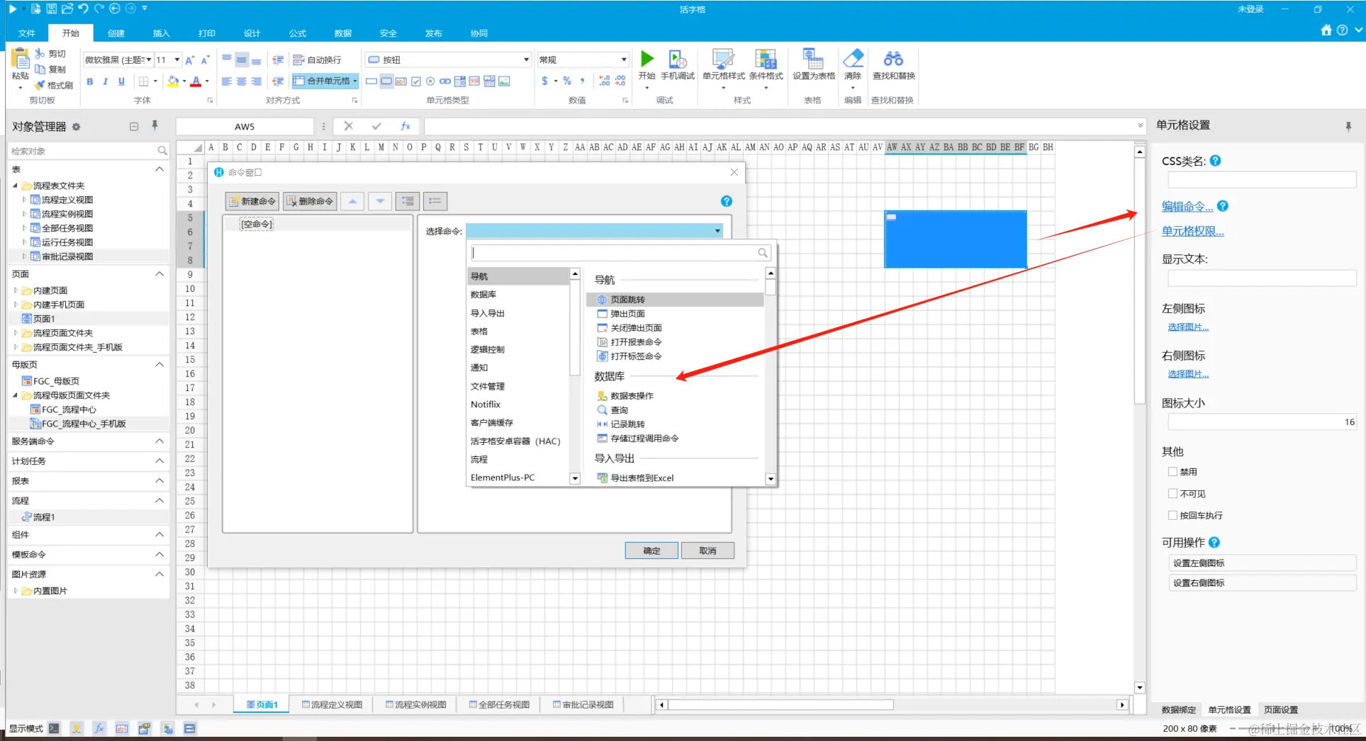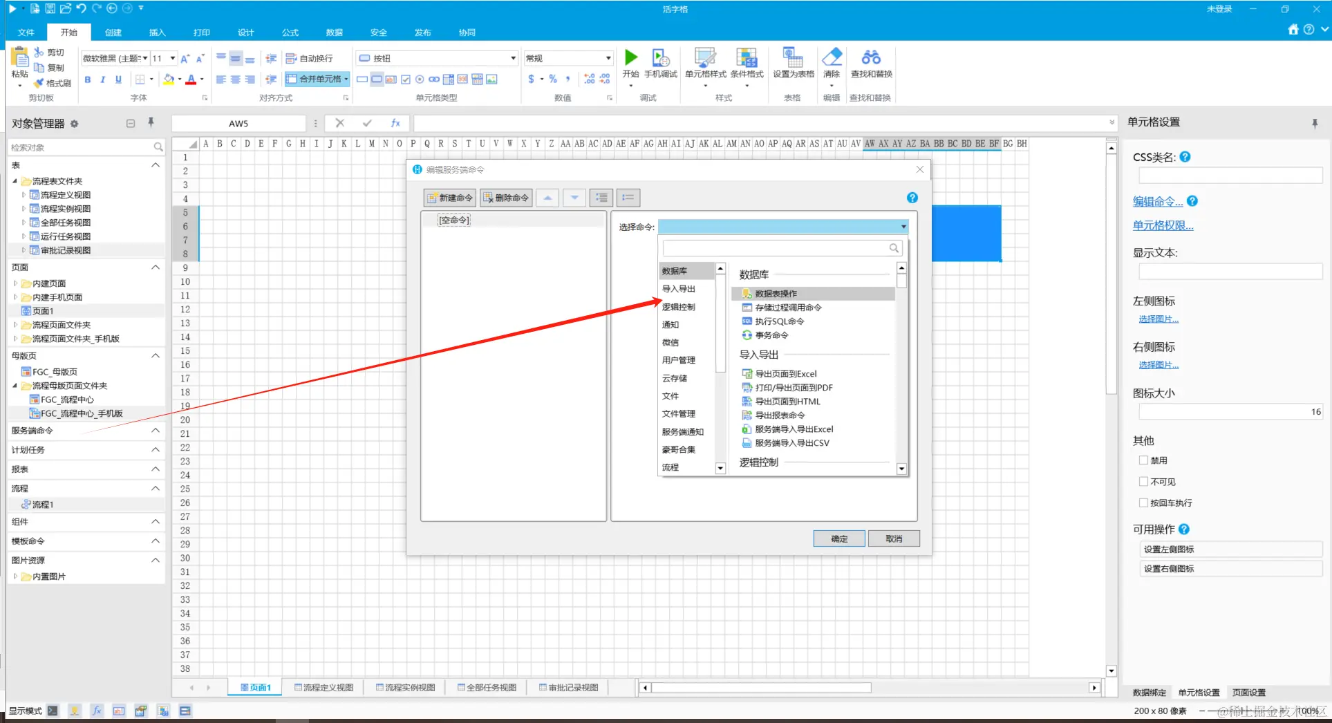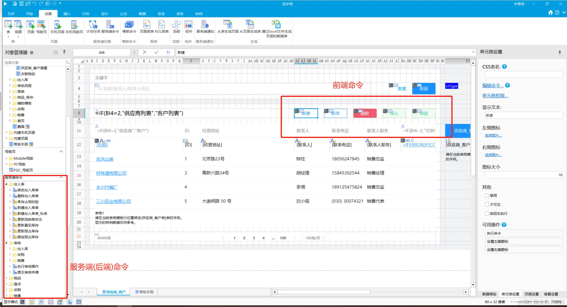 我们根据库存管理系统的需求,灵活的使用活字格提供的各种前端,后端命令,来搭建自己的业务逻辑: