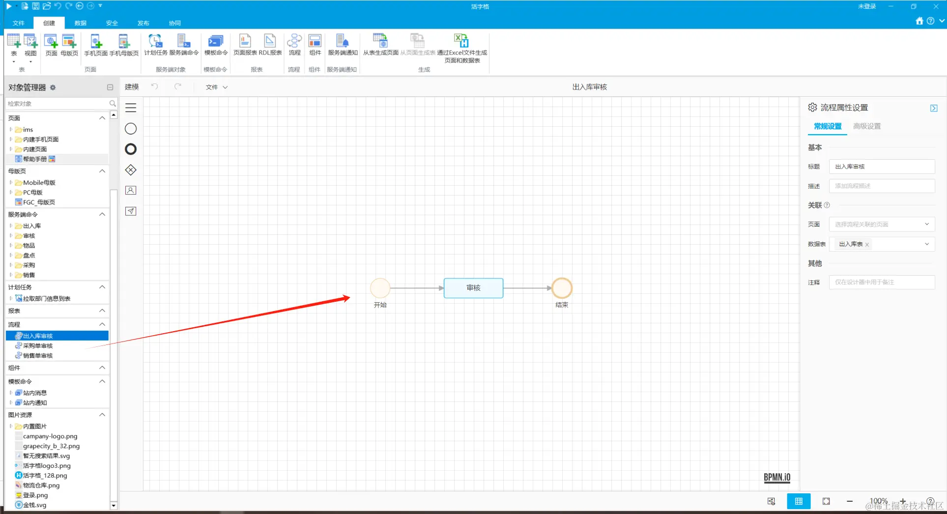 这里我们创建三个流程来实现出入库,采购单,销售单的审核