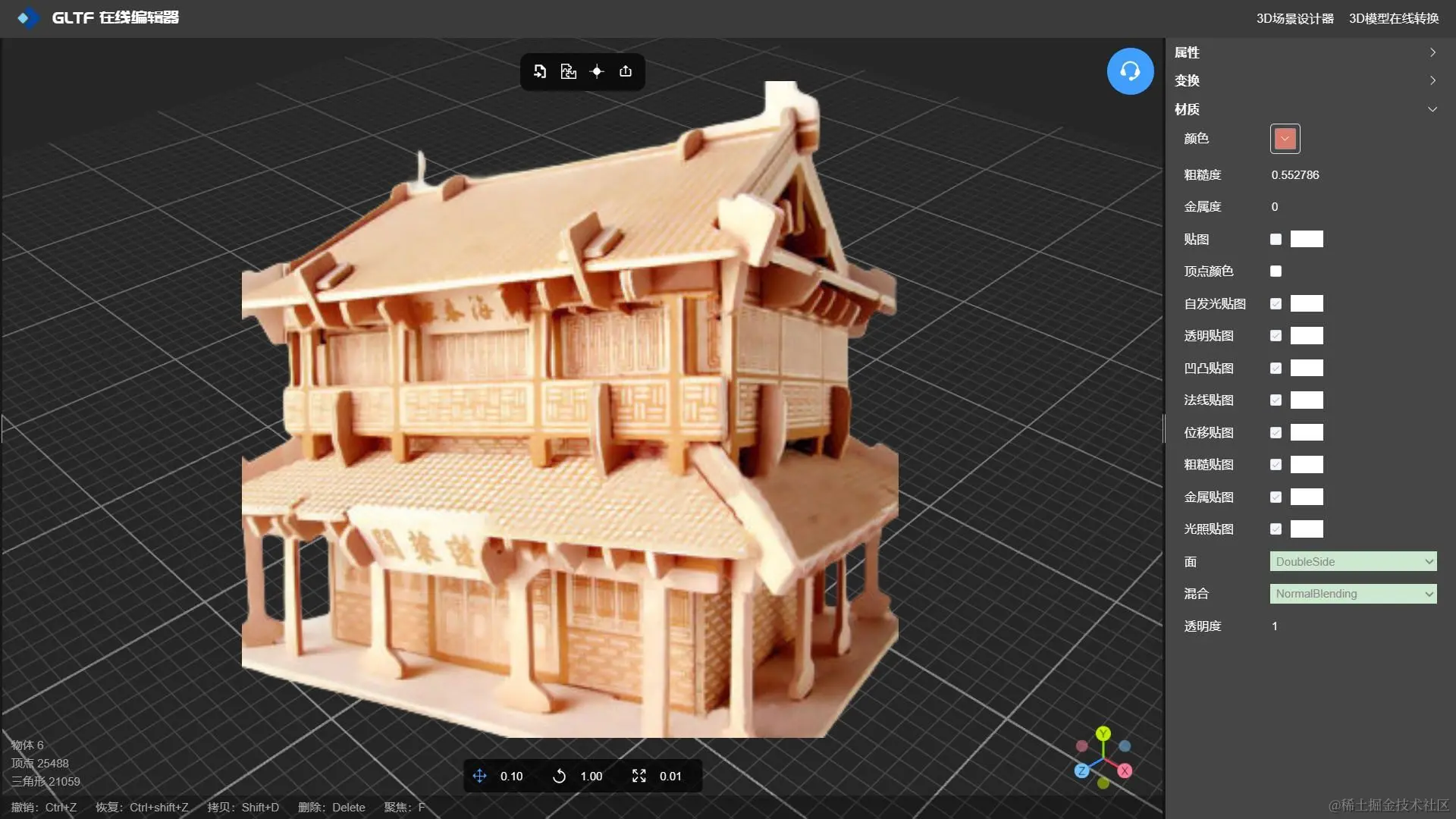 本文将讲解如何使用GLTF 编辑器 -NSDT 在线材质编辑工具为制作一个手工木质蓬莱阁3D模型,在开始之前我们先了解下纹理里纹理贴图的一些基本概念。