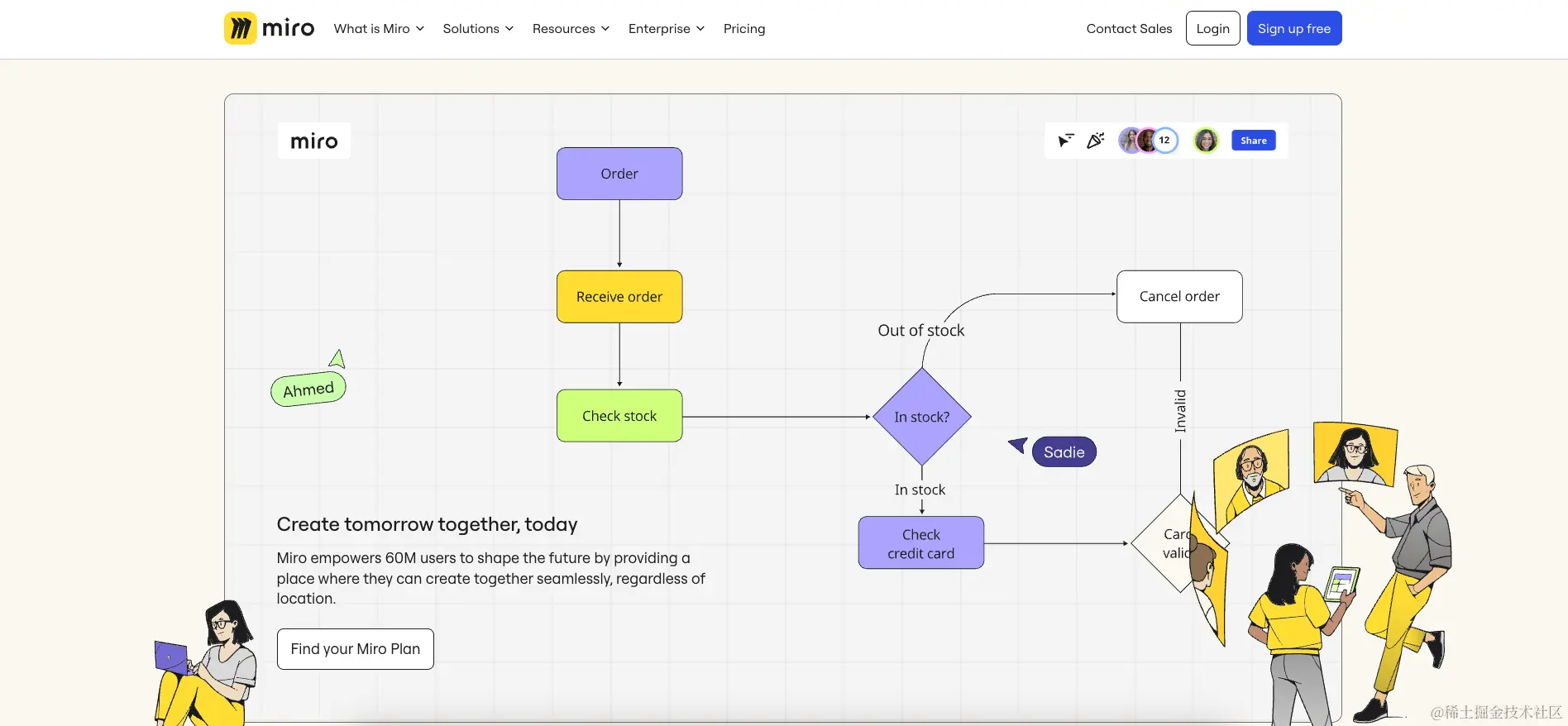 Miro是一个在线白板工具,非常适合设计团队的协同工作场景,比如头脑风暴和在线研讨会。在收购了Invision的Freehand功能后,Miro已经成为了全球白板用户最多的产品。虽然白板工具不适合做高保真的设计工作,但对于设计早期的研讨场景,白板的体验优势还是独一无二的。