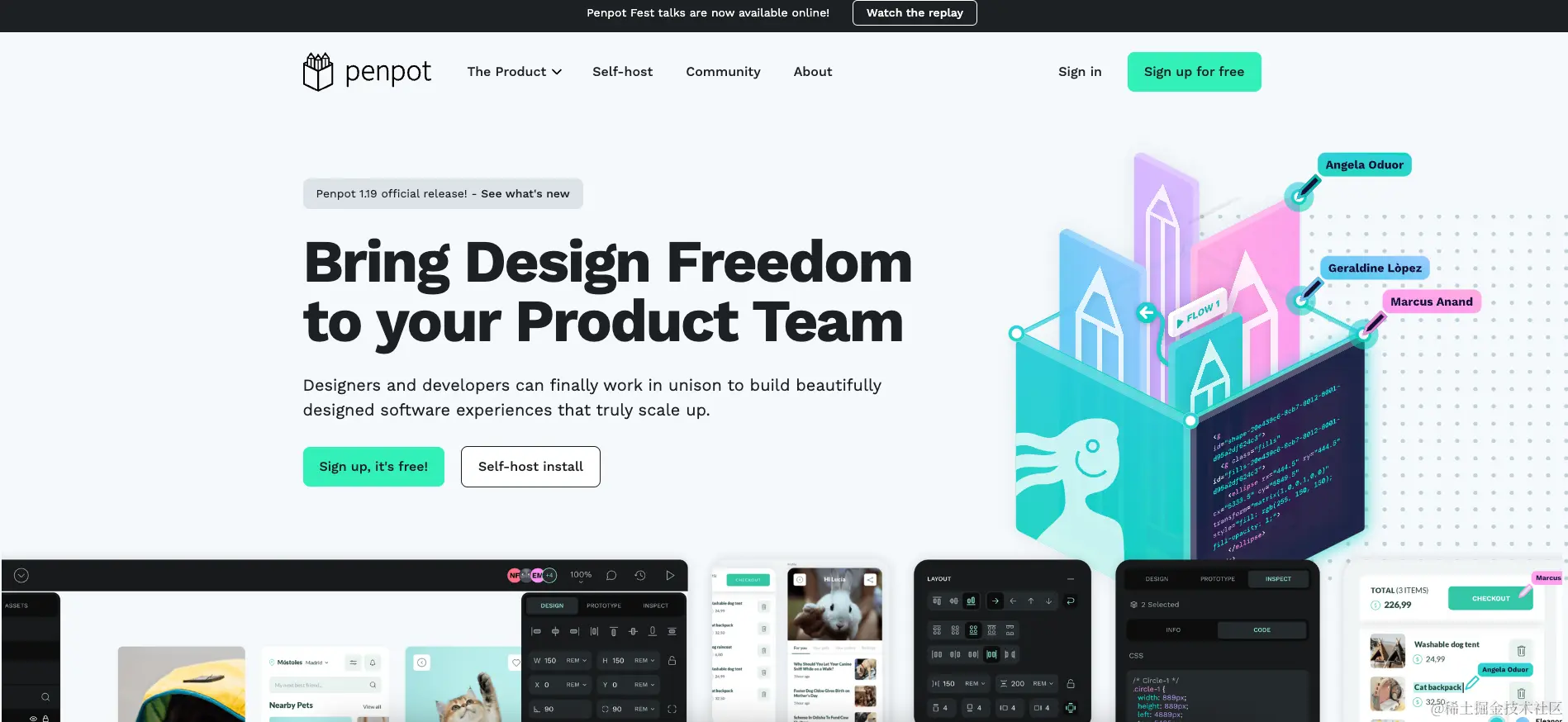 Penpot是一个免费开源的设计和协同平台,专注于用户界面设计和原型设计。它提供了一套丰富的设计工具和组件,设计师可以创建交互式原型并与团队成员协同。Penpot支持实时共享和评论功能,适用于小型到大型团队的设计协同。由于Penpot完全开源,你甚至可以将这款产品自行部署在企业服务器上。