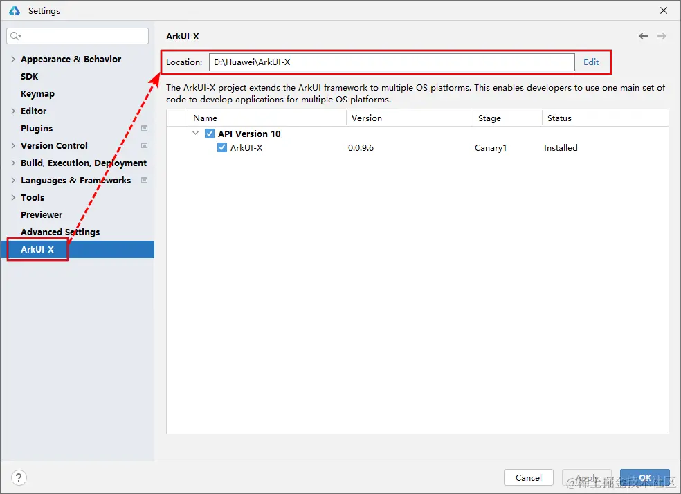 打开Settings界面,找到ArkUI-X选项,下载当前的最新SDK即可