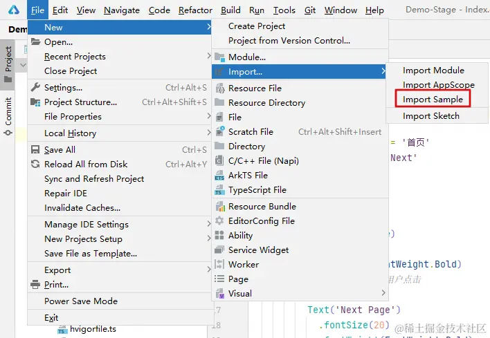 依次选择 File -> New -> Import... -> Import Sample