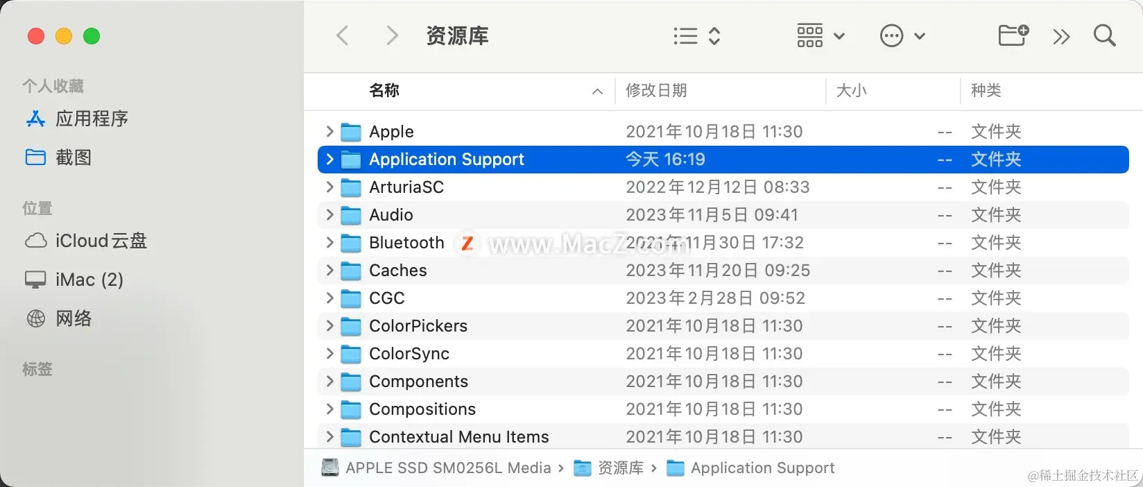 3、进入「资源库」文件夹后,找到并打开「Application Support」(应用支持)文件夹。4、在Application Support文件夹中,查找与残留软件相关的文件夹或文件,并将其删除。