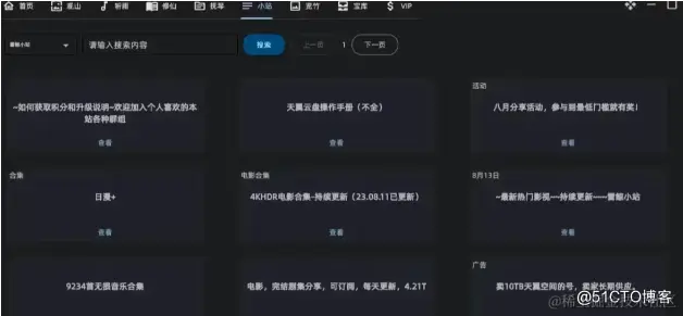 小站支持更多种类资源的获取(影视、教程、游戏等),普通用户支持从天翼小站获取资源,VIP同时支持从阿里小站获取资源,还支持获取在线影视资源。