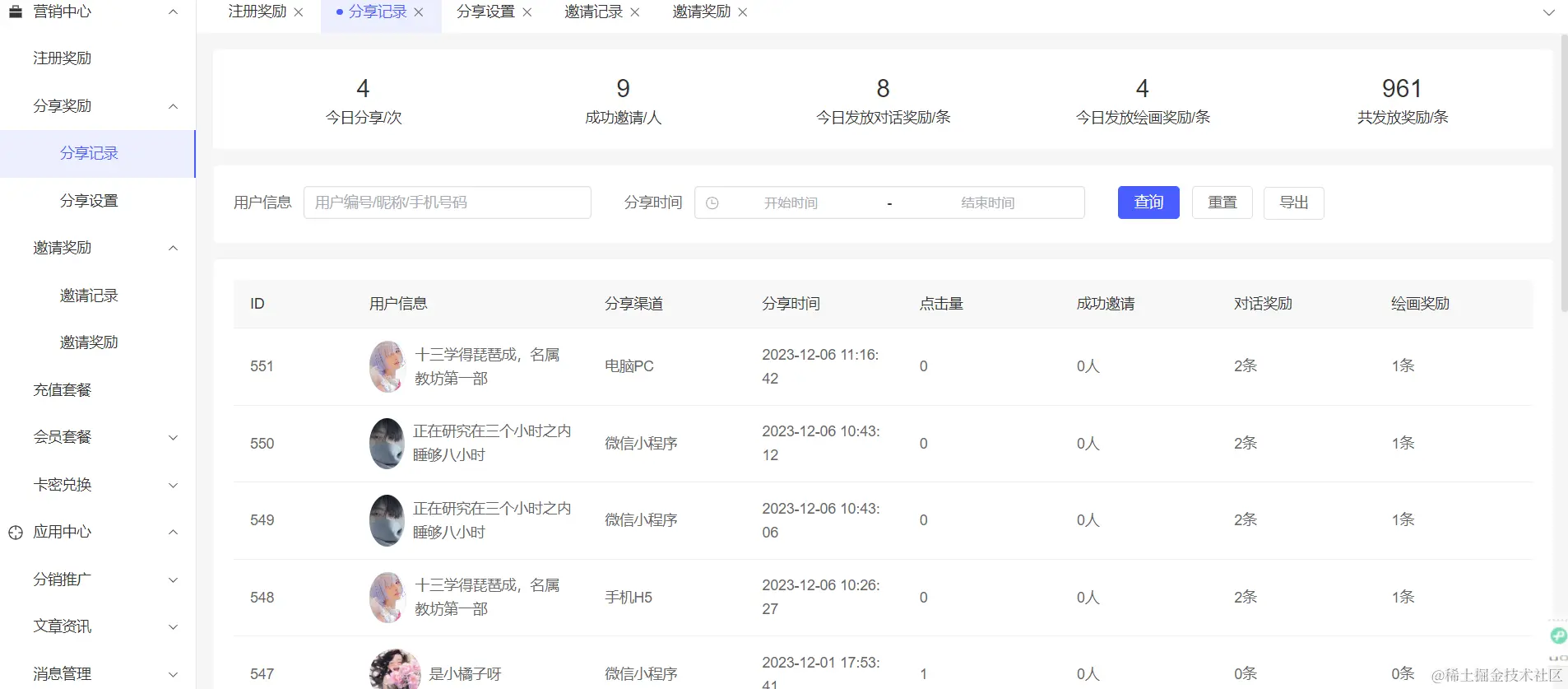 5.任务奖励:可提高用户的积极性和参与性,奖励包括:注册奖励、分享奖励、邀请奖励,不同的奖励获得的对话次数也不一样。