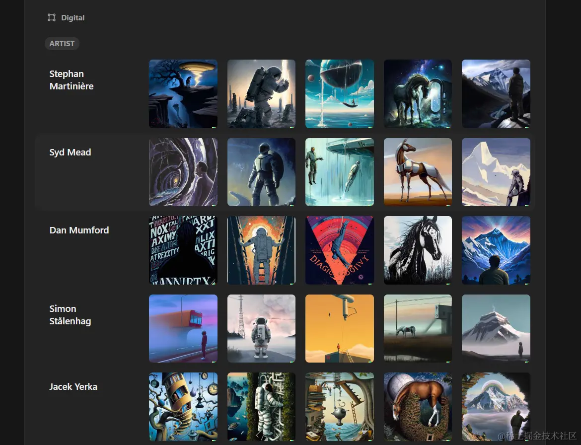 主打Dalle2模型的绘画,里面有很多十分不错的绘图咒语!