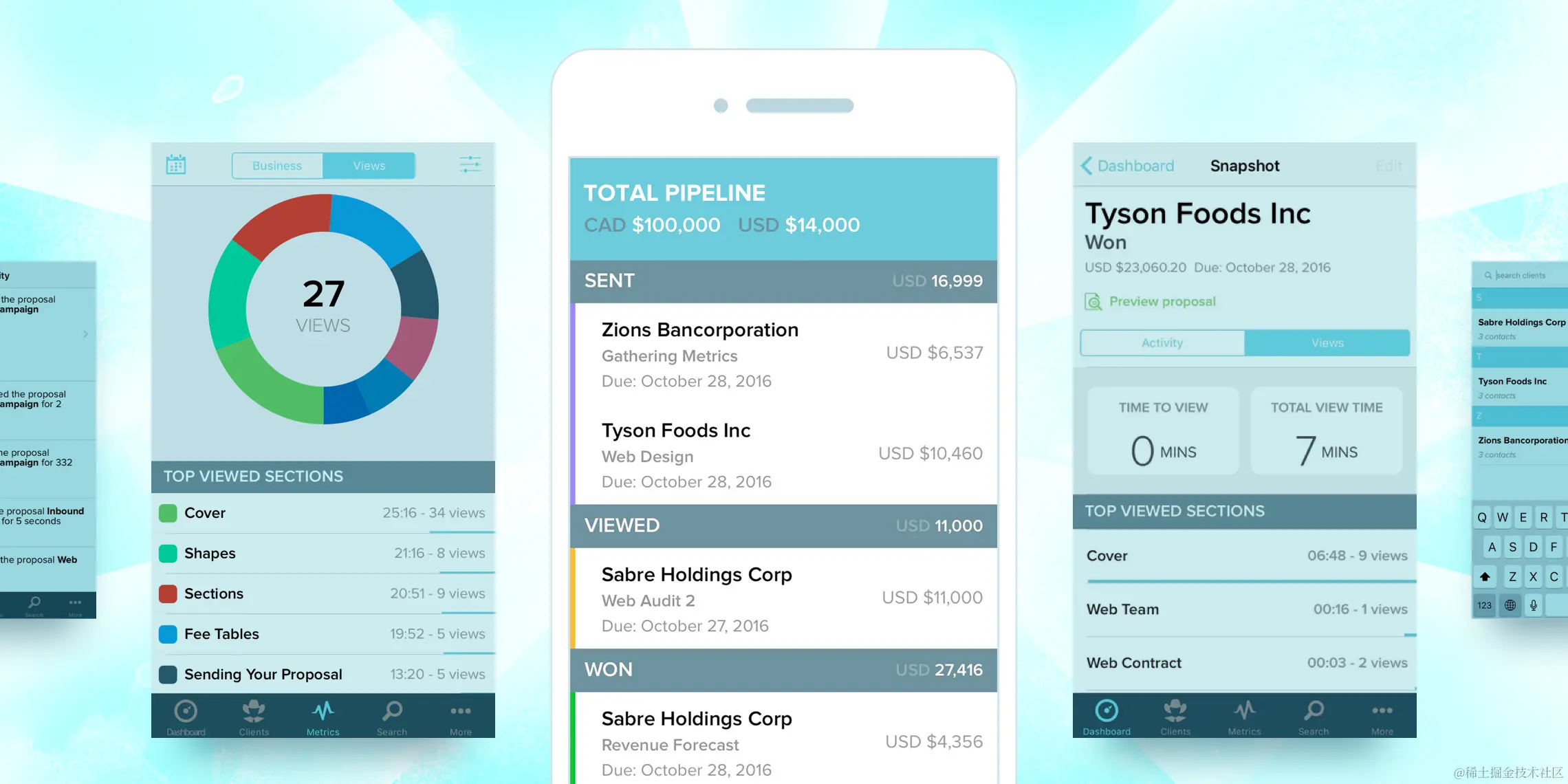 内置的分析和即时通知让你了解客户对你的提案的响应情况