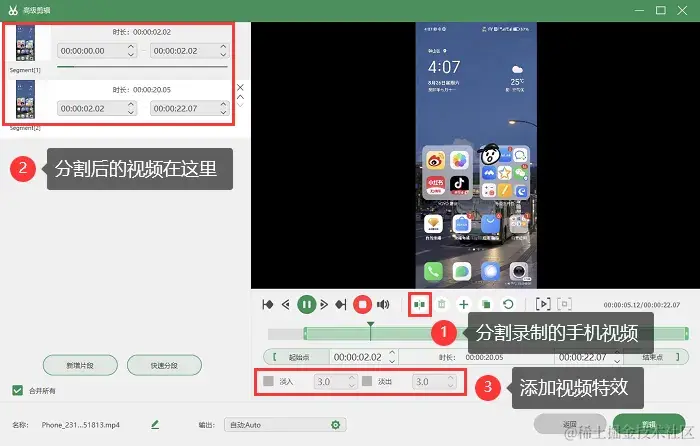 第4步:录制过程中,可以随时截图,录制结束后,软件提供了一些实用的编辑工具,您可以对录制的视频进行分割、添加特效等操作。