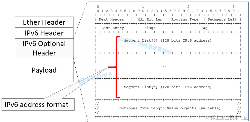 SRv6的可编程能力是由其三层可编程空间提供支持的,这三个关键组成部分分别是 Segment 序列、SRv6 SID(Segment Identifier)的运用、以及 Segment Routing Header(SRH)中的 Optional TLV(Type-Length-Value)。