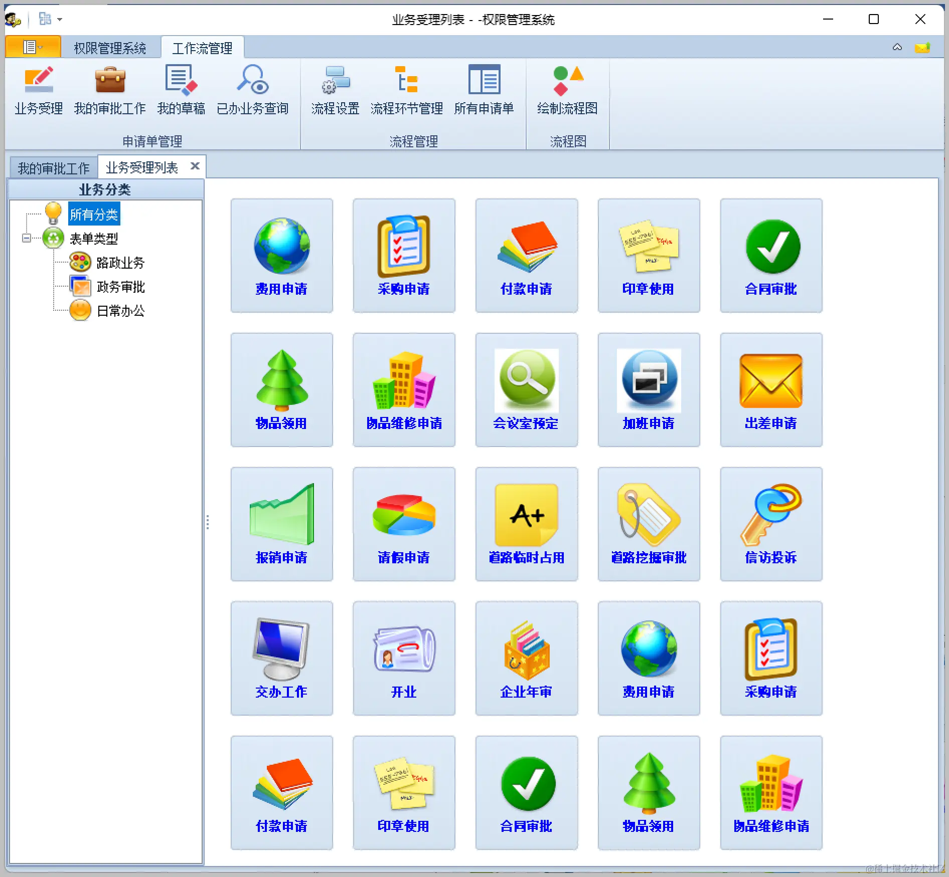1、创建申请单的入口,列出所有相关流程申请单类型。