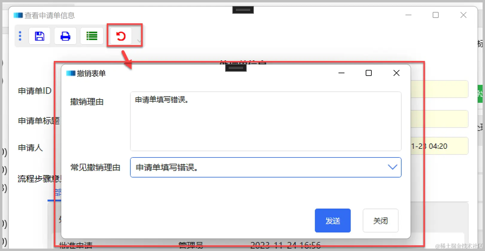如果是自己发起的申请单,可以在结束期进行撤回处理。