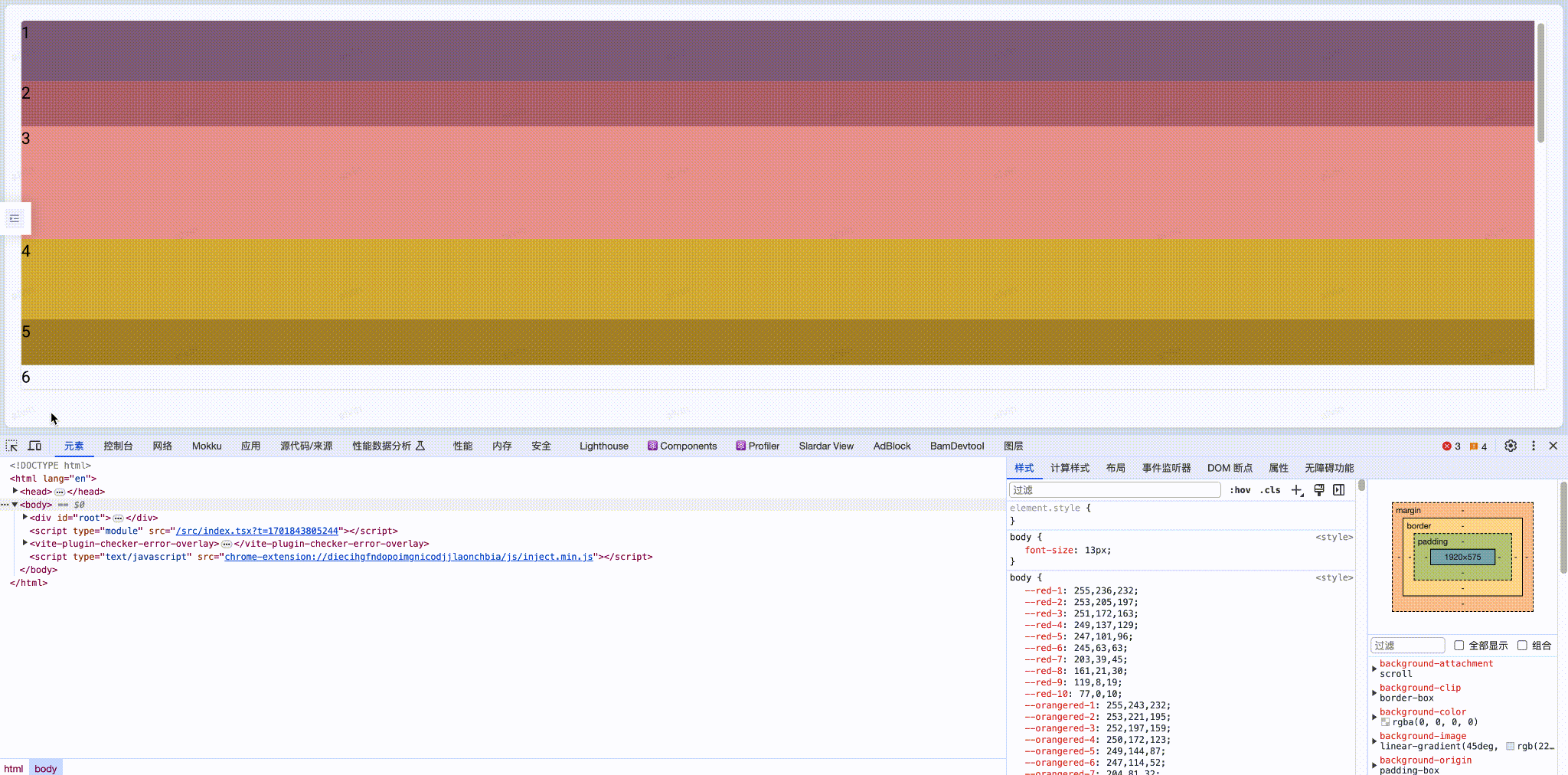 使用Chrome的图层进行调试可以发现有很多DOM节点都是不可见的,这些不可见的DOM就是即将被优化的对象。