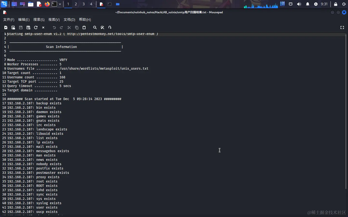smtp-user-enum -M VRFY -U /usr/share/wordlists/metasploit/unix_users.txt -t 192.168.2.107 > ./smtp用户扫描结果.txt