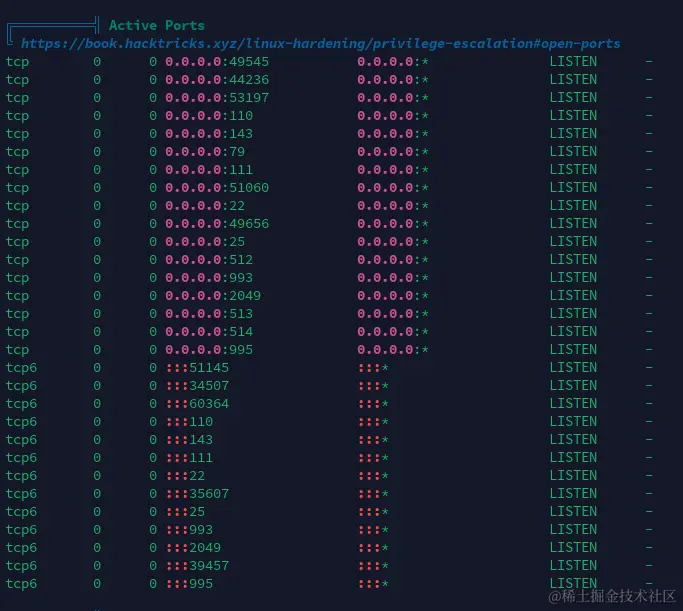 进入靶机之后,首先进行对靶机操作系统的信息收集。为了方便,这里首先使用自动化工具LinPeas进行扫描收集。GitHub地址:GitHub - carlospolop/PEASS-ng: PEASS - Privilege Escalation Awesome Scripts SUITE (with colors)