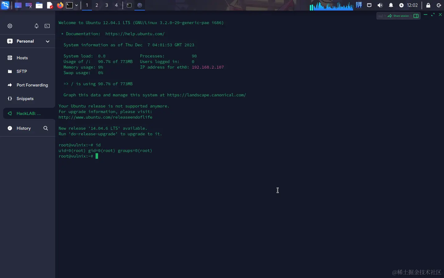 得知靶机操作系统为Ubuntu 12.04.1 LTS,内核版本为3.2.0-29-generic-pae