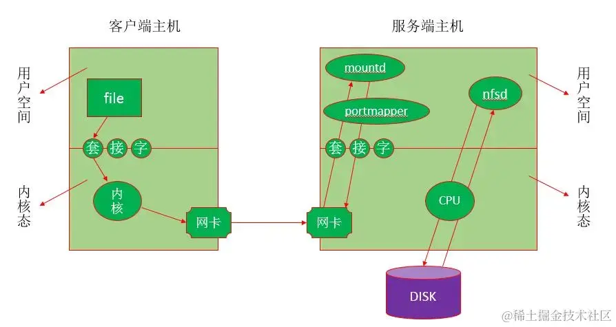 NFS客户端向服务器发送一次请求的完整流程如下: