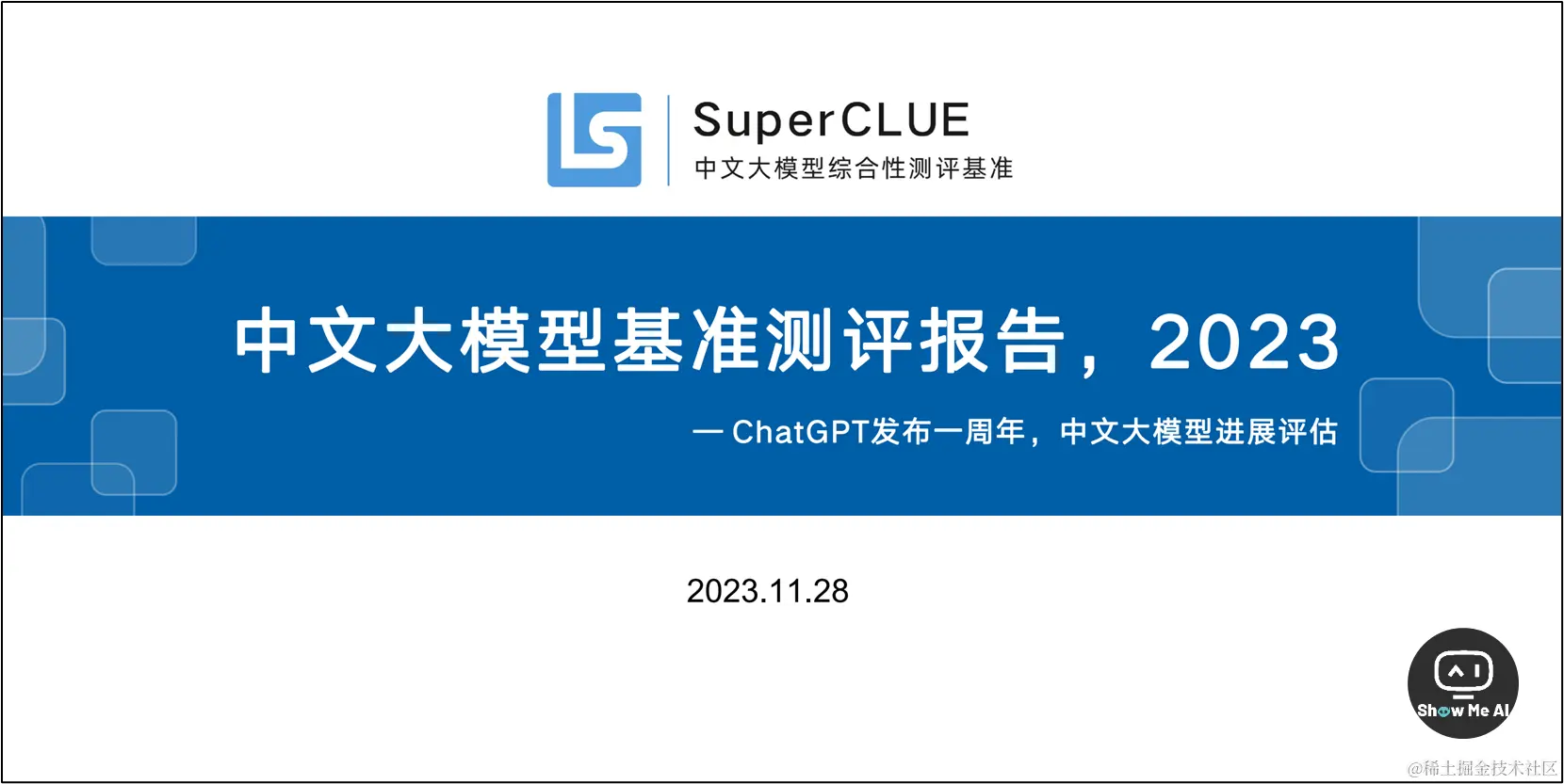 中文语言理解测评基准 CLUE (The Chinese LanguageUnderstanding Evaluation) 发起于2019年,陆续推出CLUE、FewCLUE、KgCLUE、DataCLUE等广为引用的测评基准。SuperCLUE 是大模型时代 CLUE 基准的发展和延续,聚焦于通用大模型的综合性测评,构建了多层次、多维度的综合性测评基准。