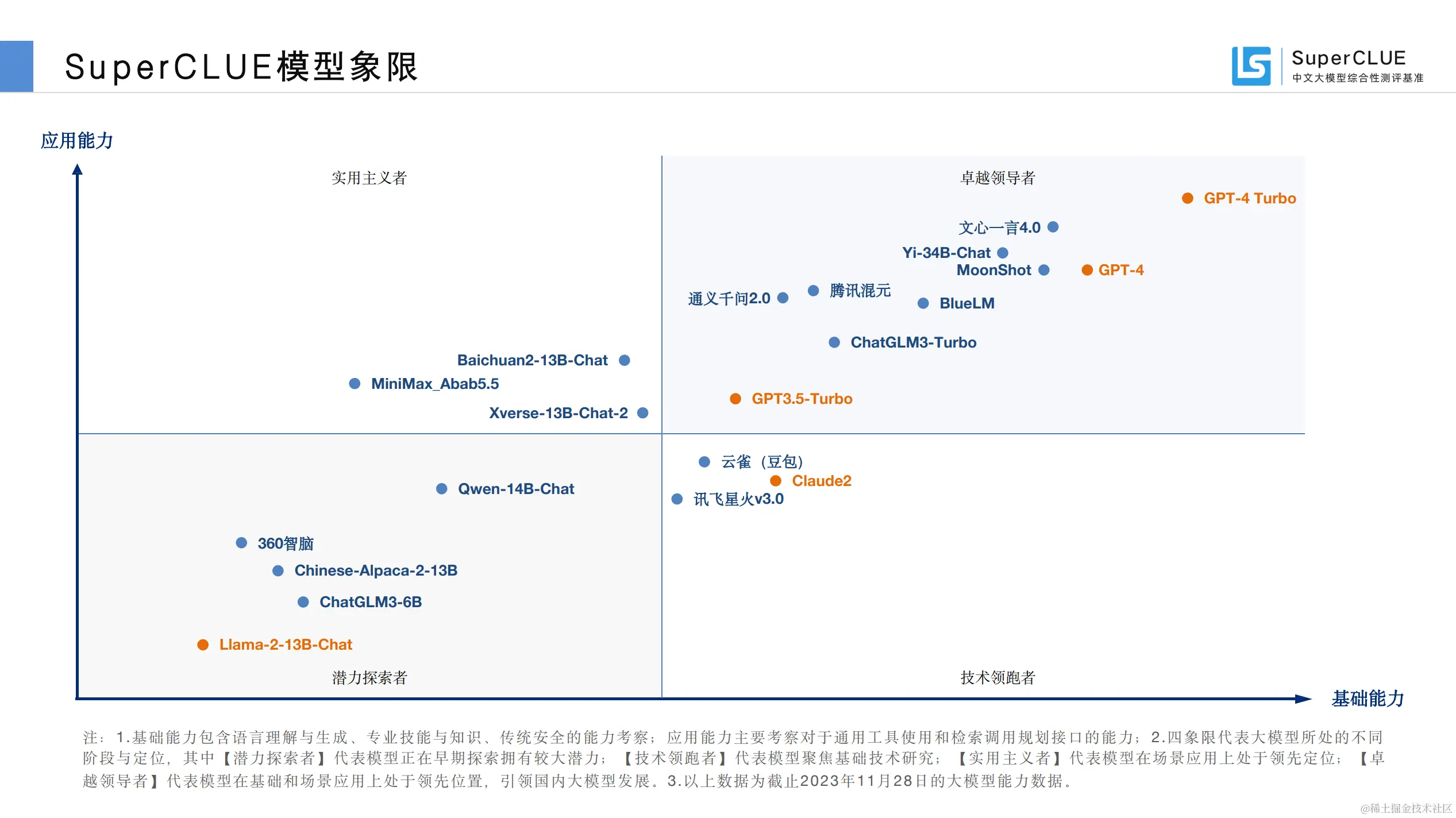卓越领导者:代表模型在基础和场景应用上处于领先位置,引领国内大模型发展