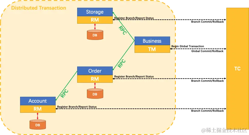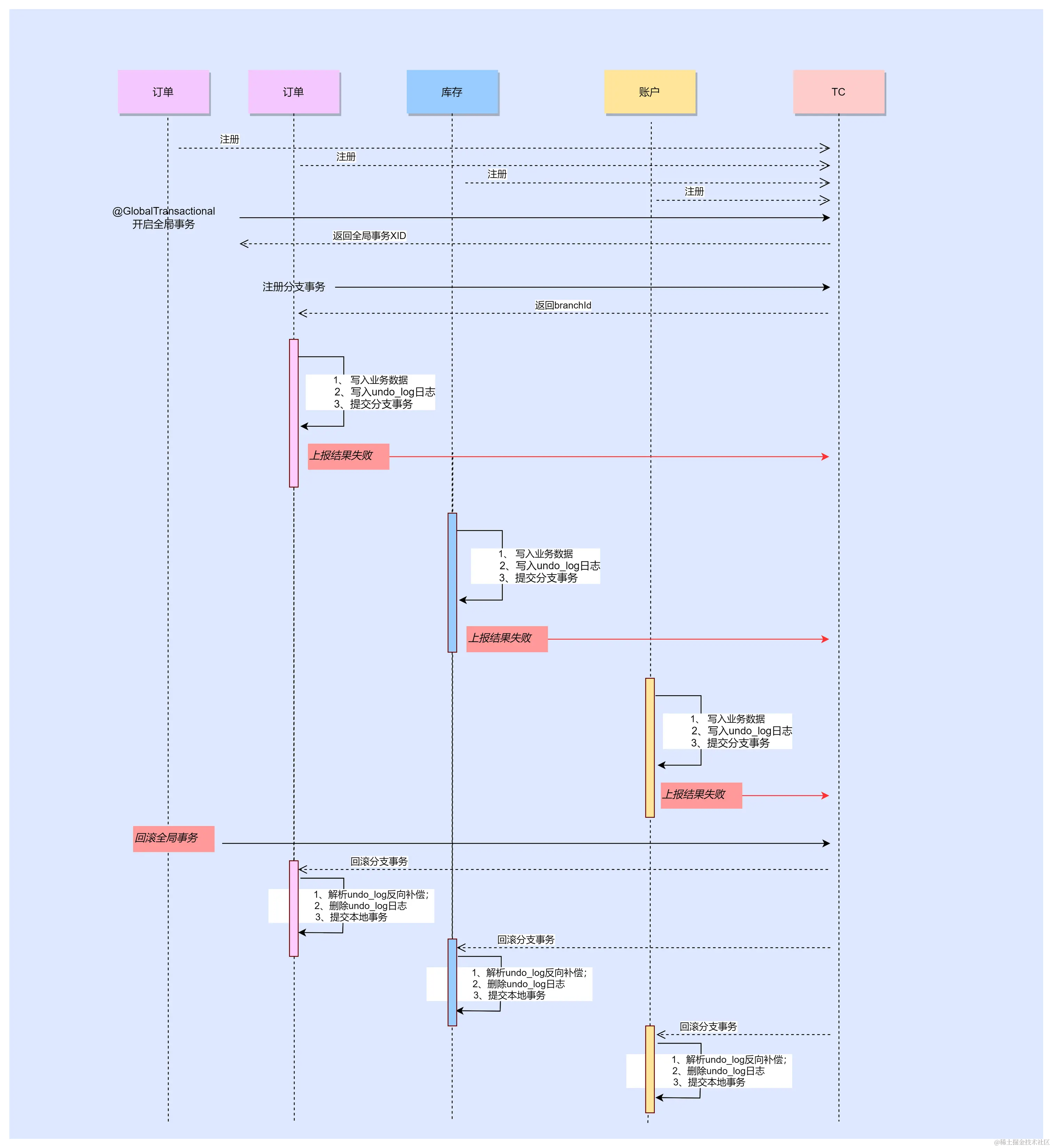 TR 事务参与者:本案例当中:订单、库存、账户都是还是事务参与者