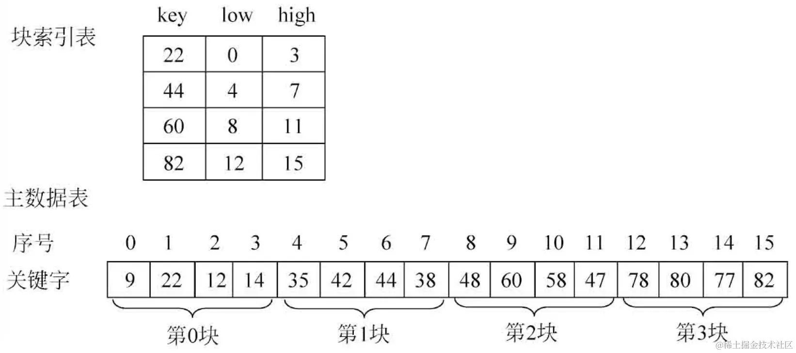 块索引表的结构如下,图片来自《数据结构简明教程》: