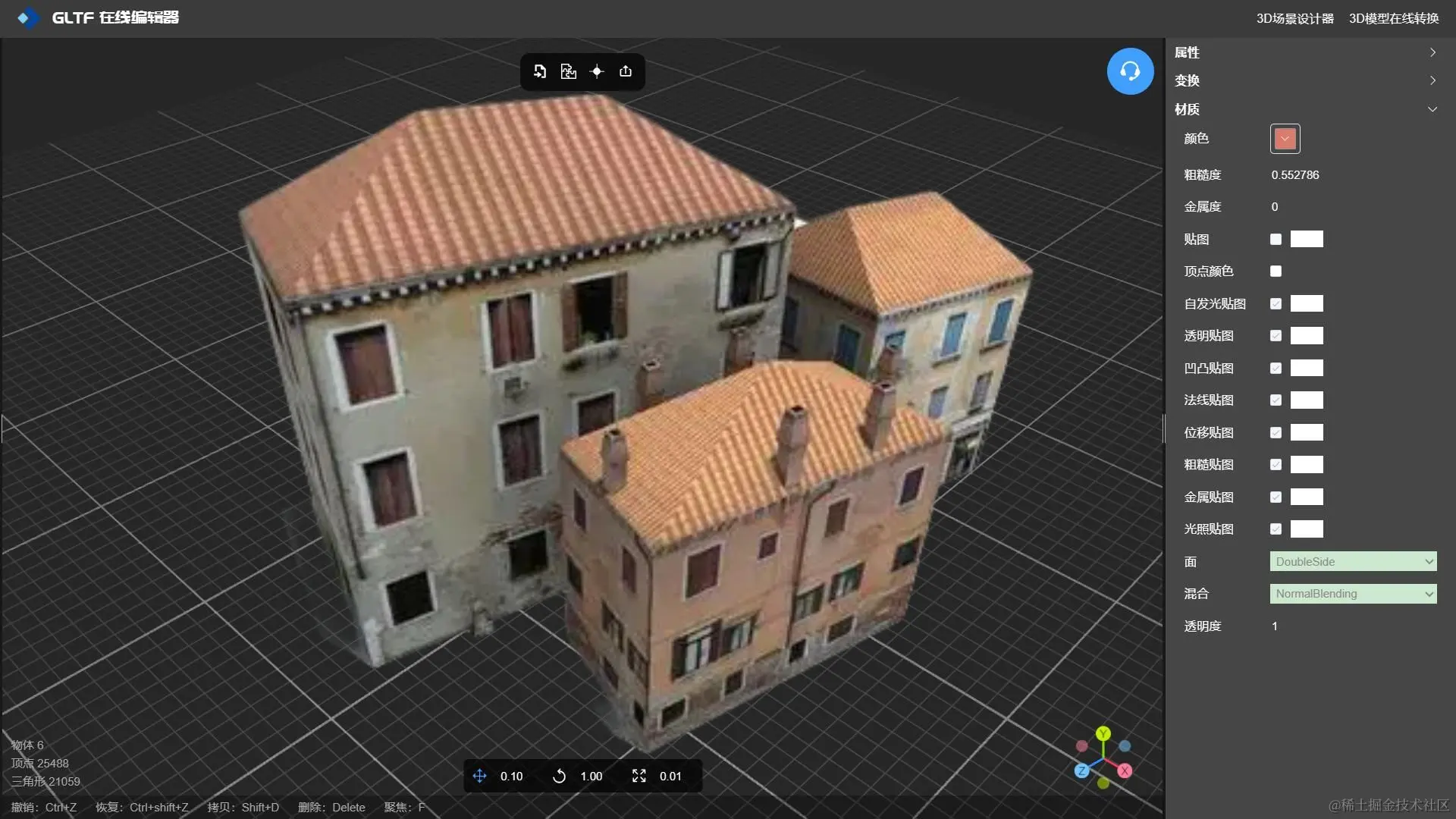 GLTF 编辑器 -NSDT 不仅可以设置3D模型纹理贴图,还可以设置模型的几何原点、以及对有相同材质属性的mesh进行合并,实现模型轻量化,是一款不可多得的实用型在线模型编辑工具。