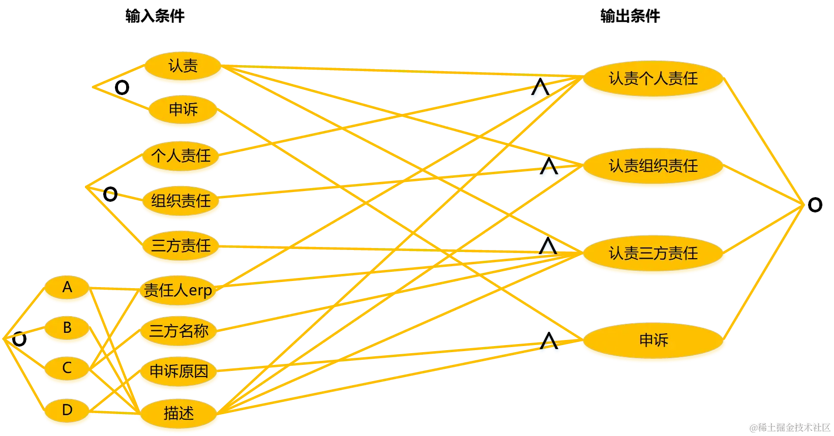 - 明确所有输出条件之间的制约关系以及组合关系;哪些输出结果不能同时输出,哪些输出结果可以同时输出