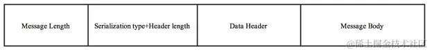 (2) 序列化类型&消息头长度:同样占用一个int类型,第一个字节表示序列化类型,后面三个字节表示消息头长度;