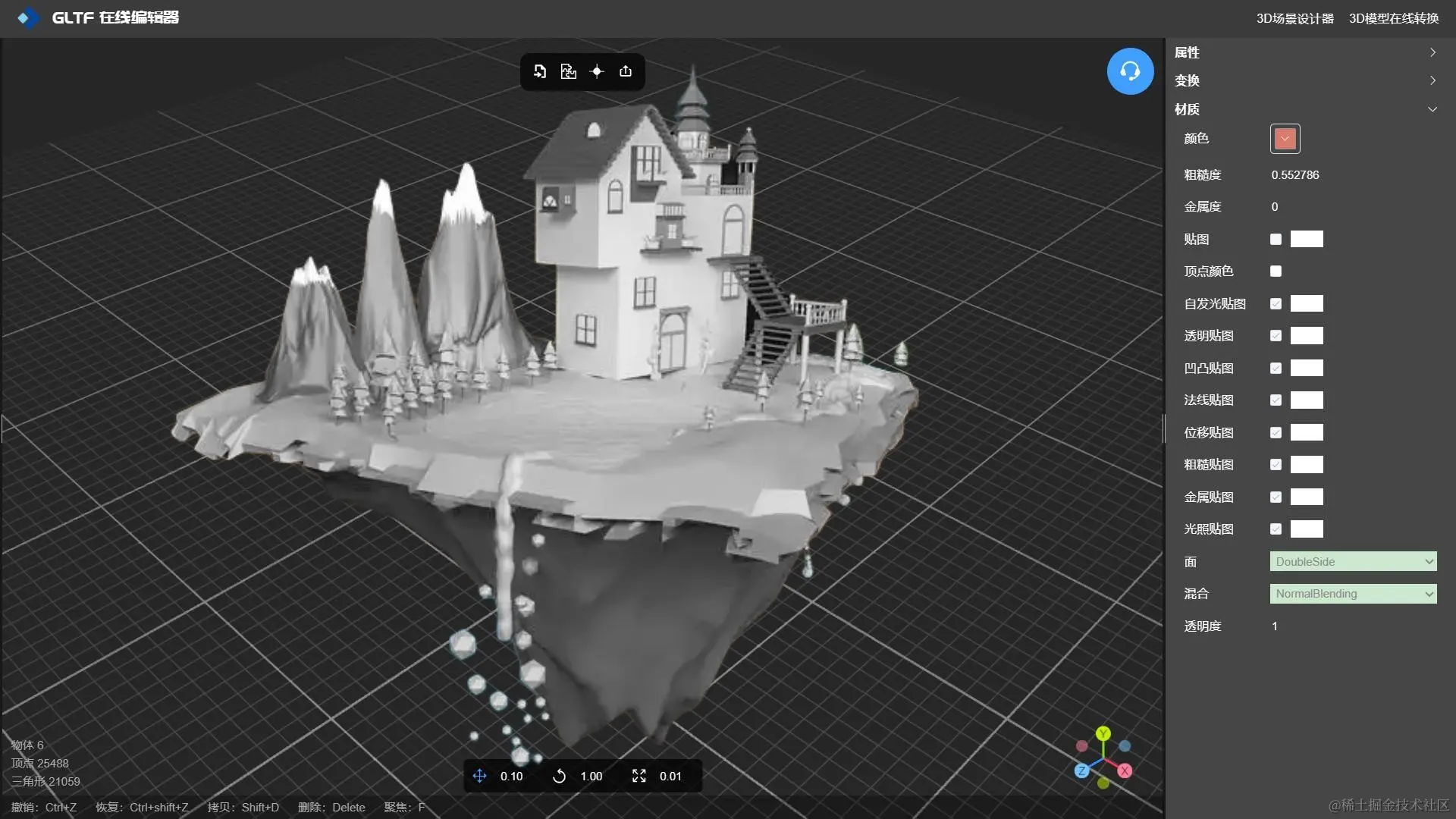 GLTF 编辑器 -NSDT 不仅可以设置3D模型纹理贴图,还可以设置模型的几何原点、以及对有相同材质属性的mesh进行合并,实现模型轻量化,是一款不可多得的实用型在线模型编辑工具。