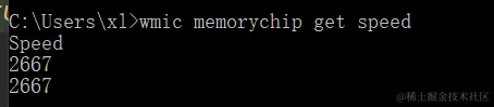 wmic memorychip get speed命令查询,结果如下: