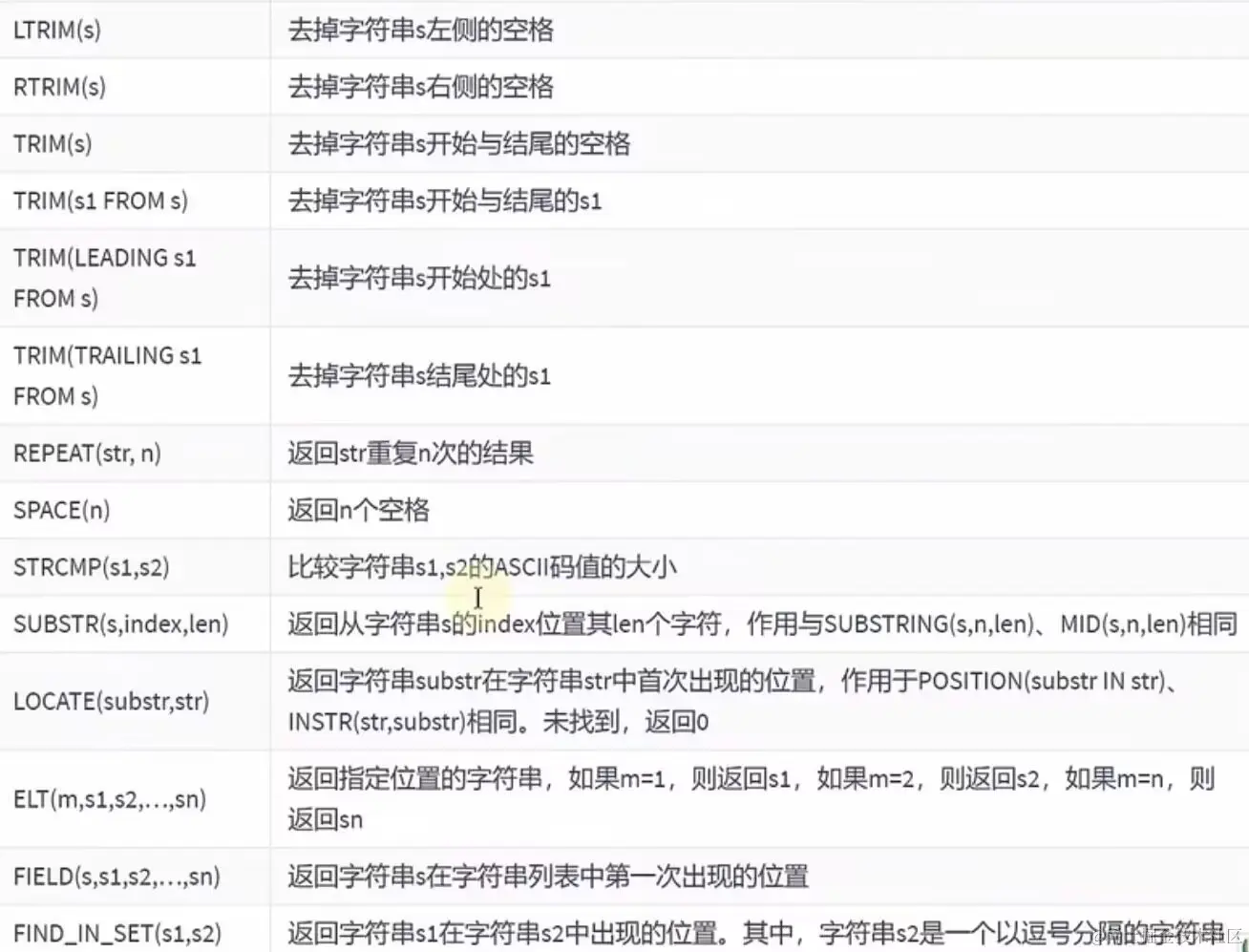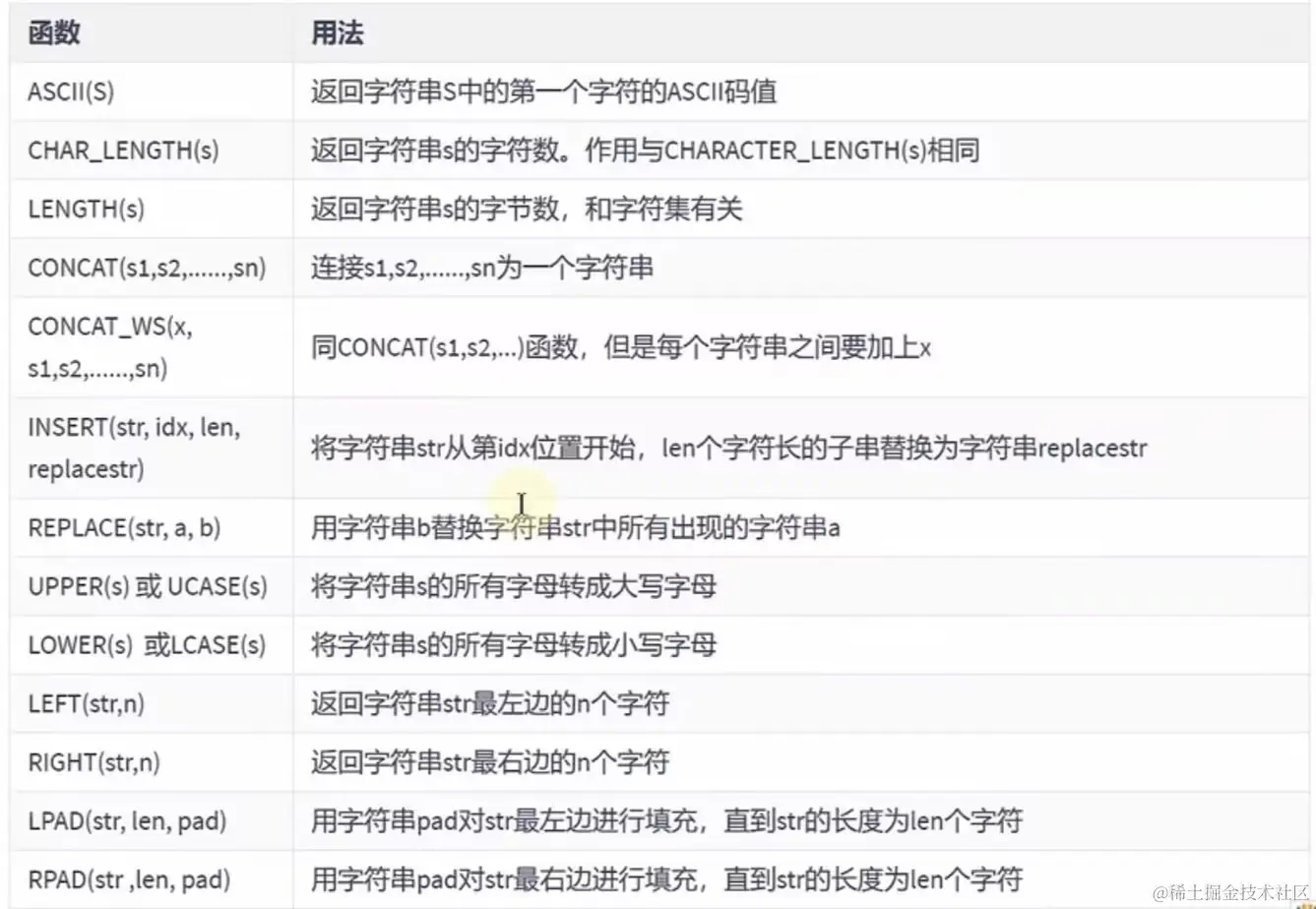 注:在MySQL中,字符串的索引是从1开始的。