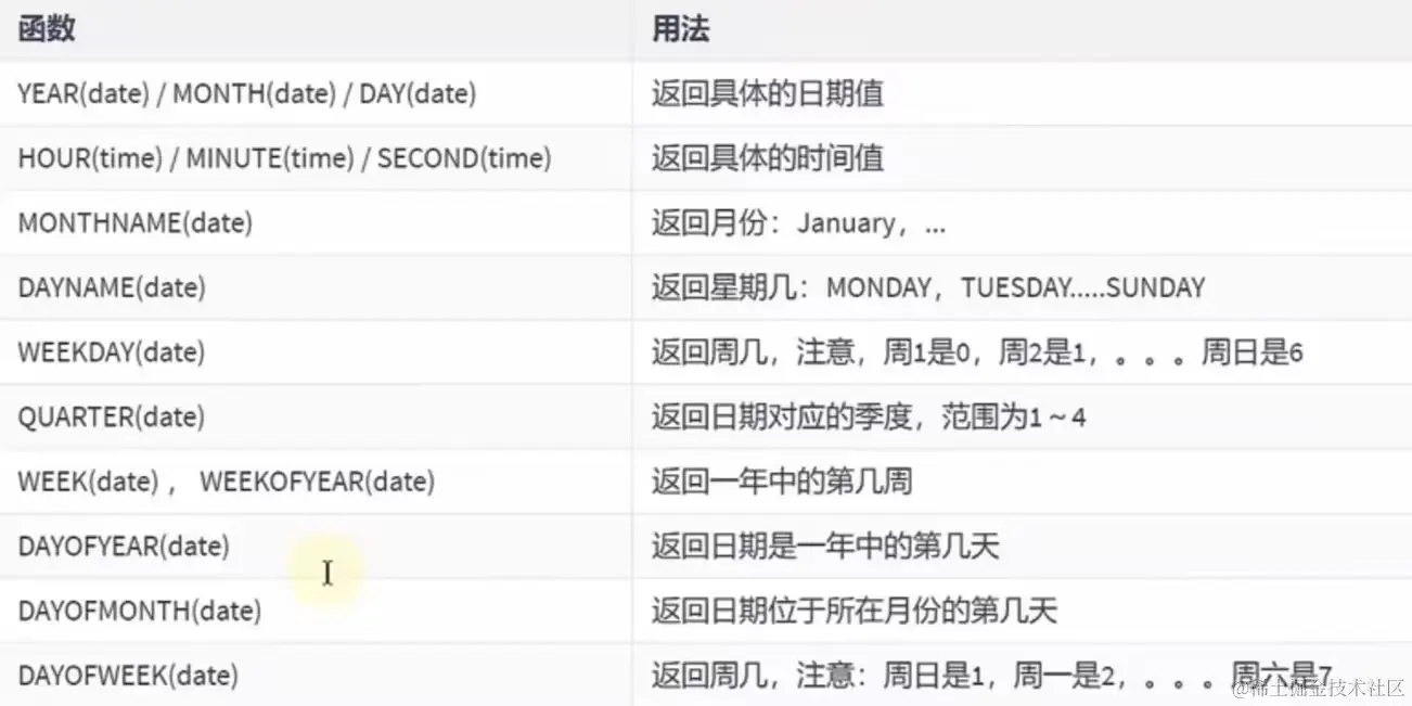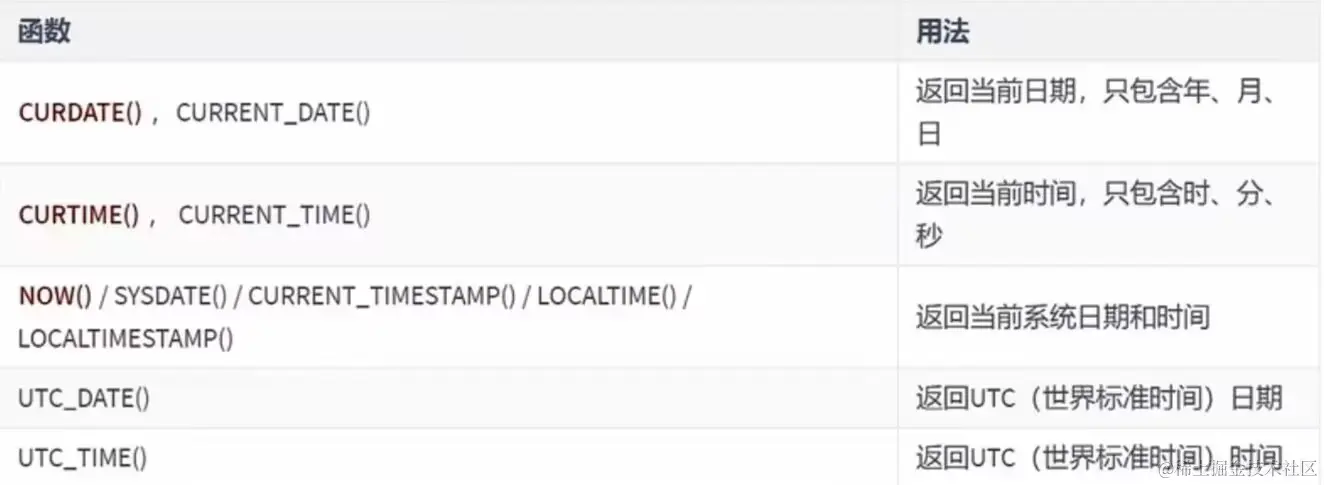 日期和时间函数: