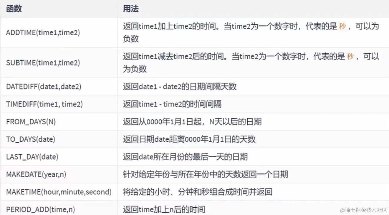计算日期和时间的函数: