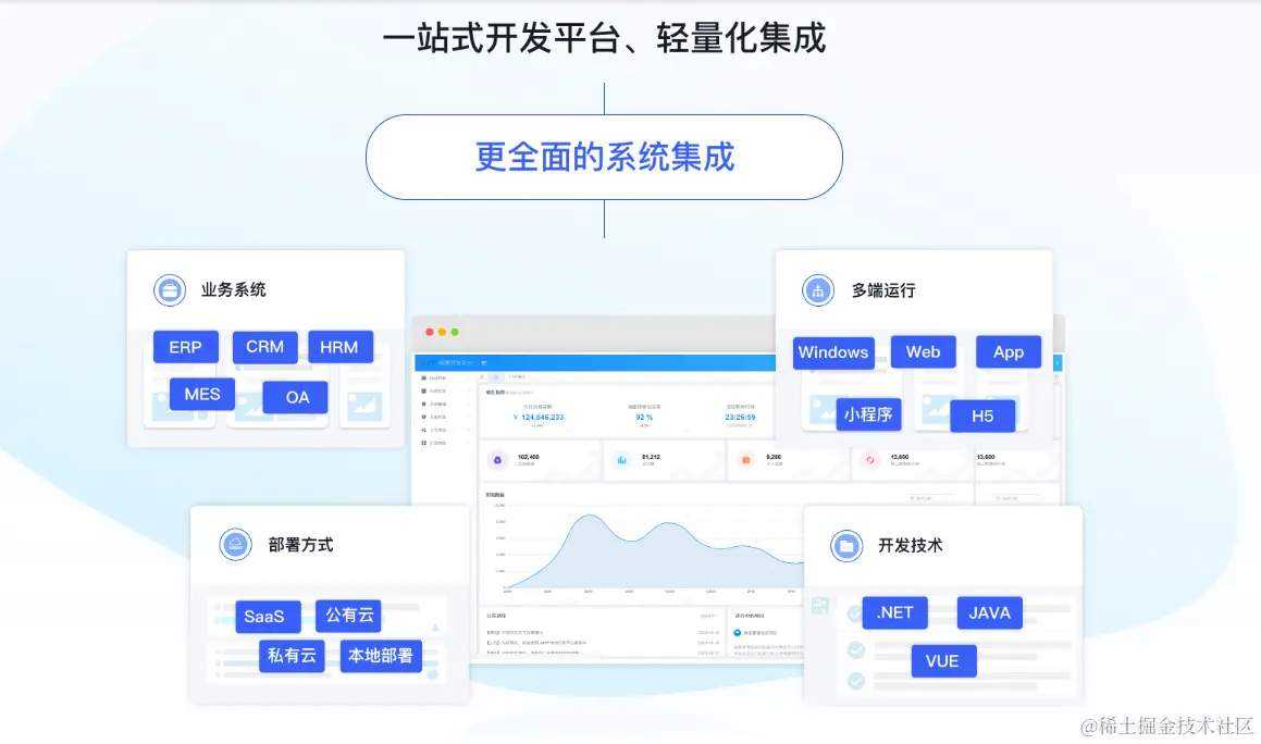 一款基于SpringBoot+Vue3的全栈开发平台,采用微服务、前后端分离架构,基于可视化流程建模、表单建模、报表建模工具,快速构建业务应用,平台即可私有化 部署,也支持K8s集成部署。用JNPF搭建应用,你只需要关注业务本身。数据存储、运行环境、服务器、网络安全等,平台为你全部搞定。